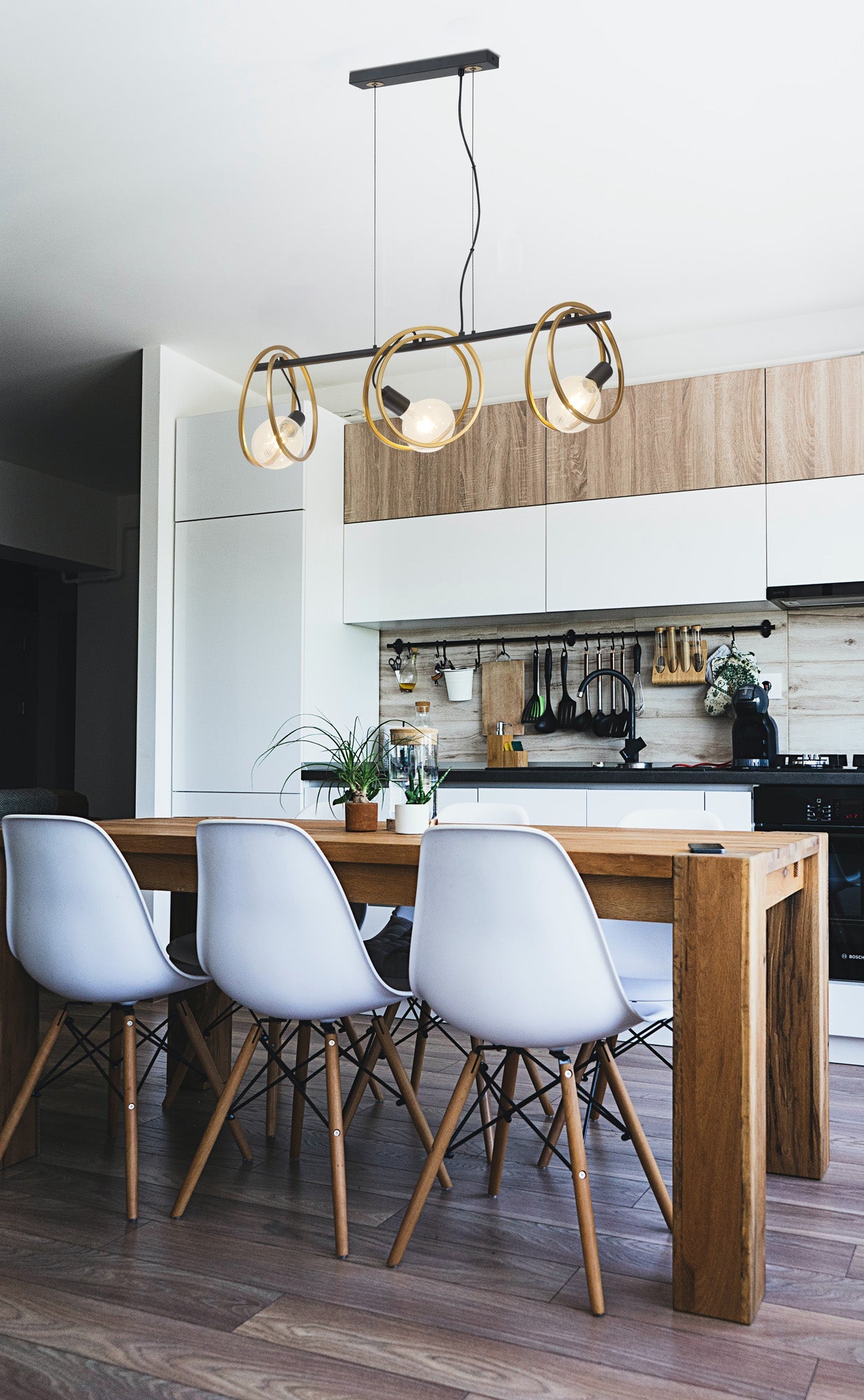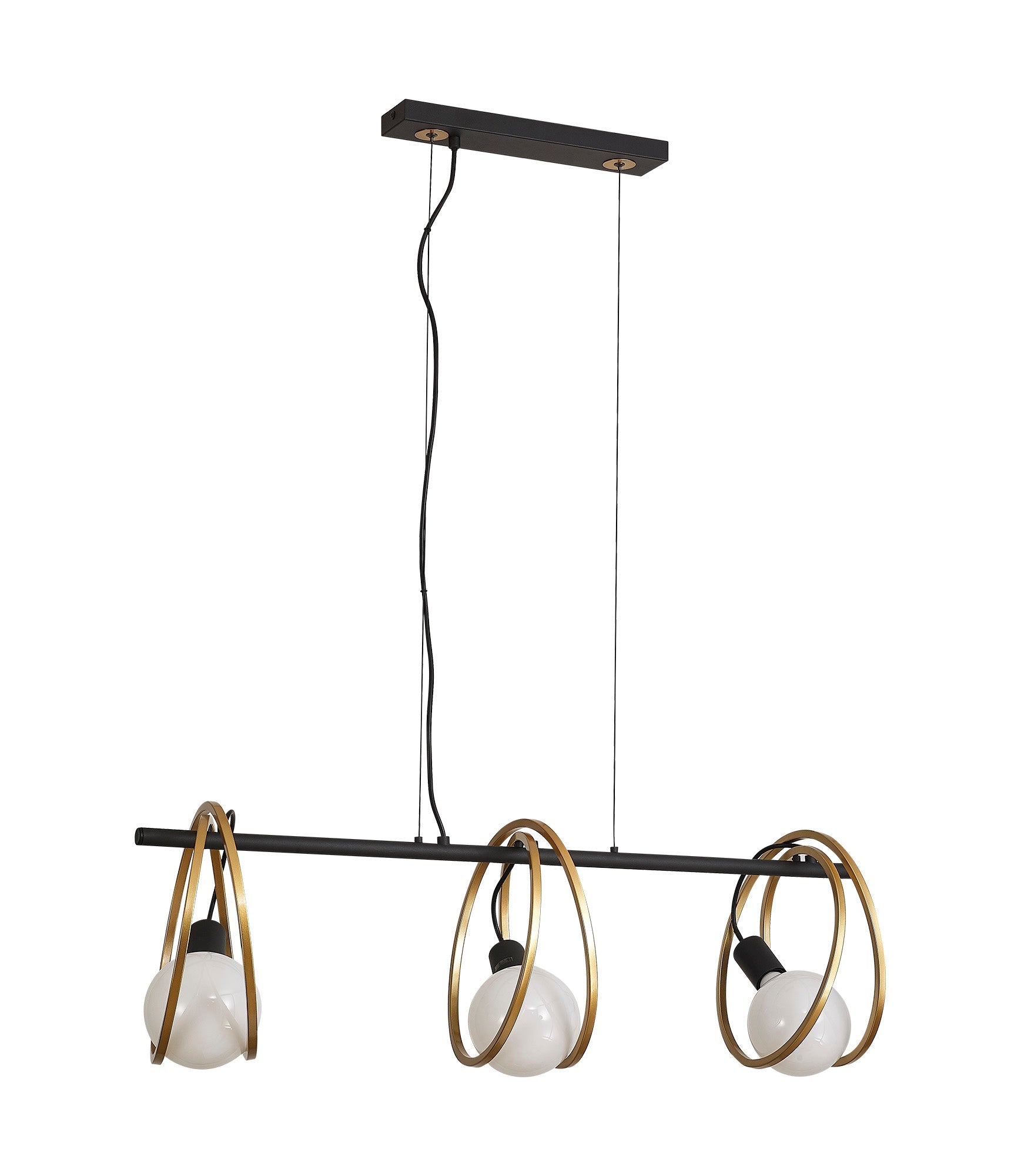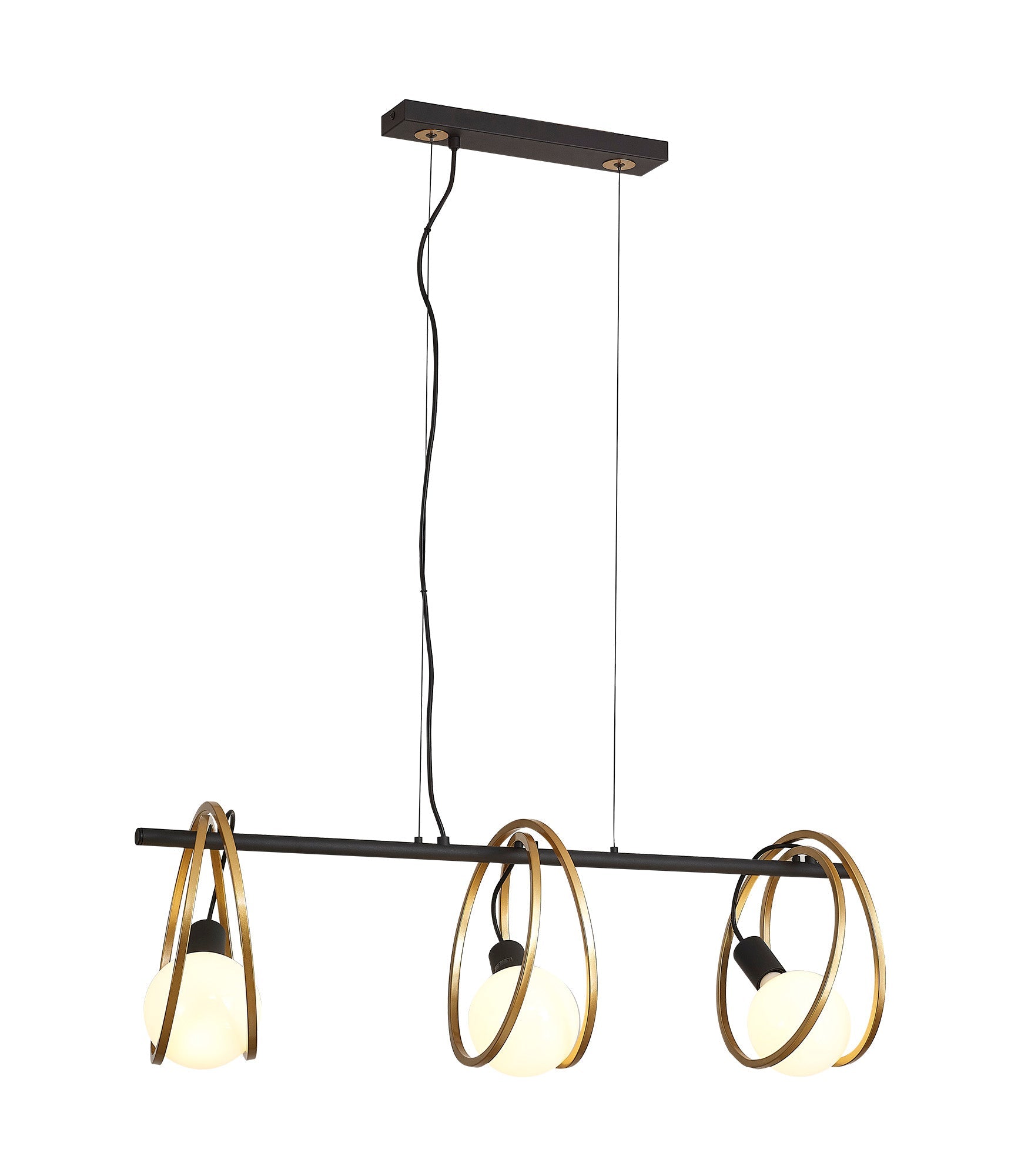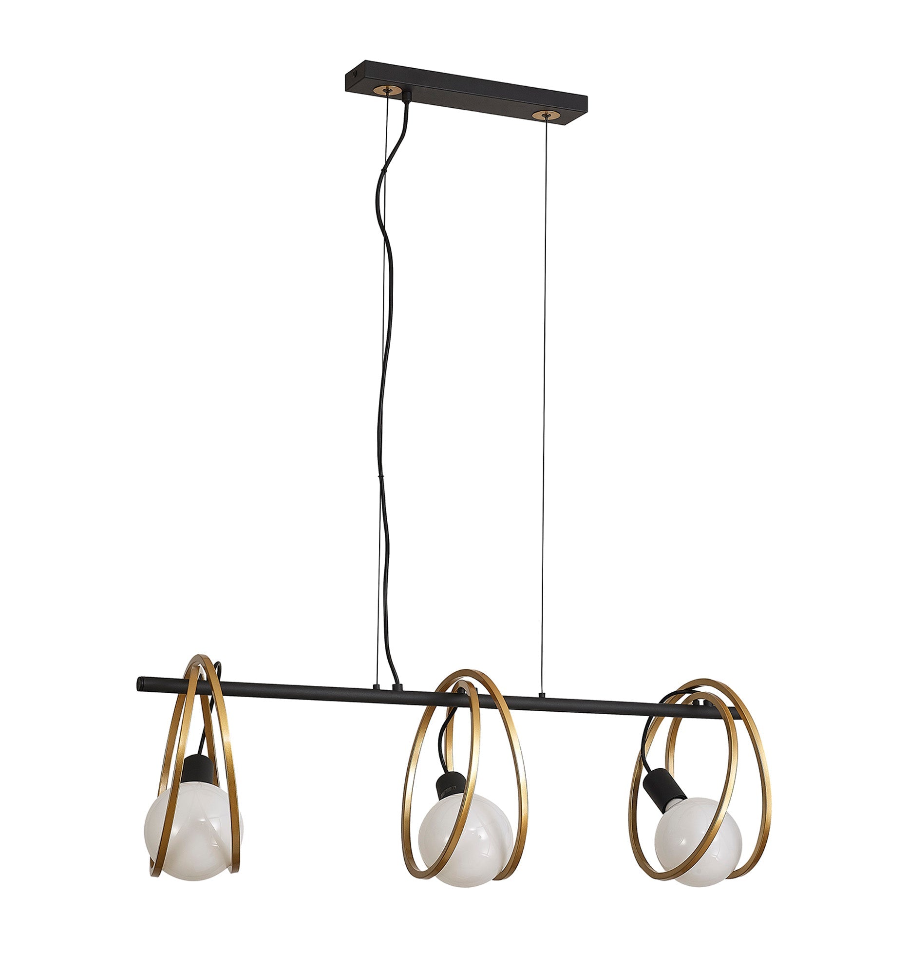 Corfu Double Ring Kitchen Table/Island Light, 3 Light E27, Matt Black & Painted Gold, G95 & 120 Lamp Recommended