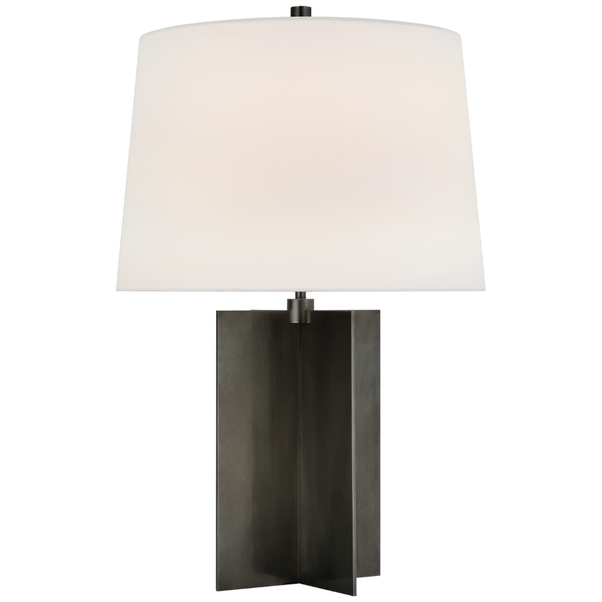 The bold Costes Table Lamp by Paloma Contreras adds a sculptural presence to any modern or traditional interior. Its stark, angular base features bronze, brass or polished nickel finishes and is capped with a generous linen shade. The refined lamp will be the subtle star of any desk, credenza or bedside table.