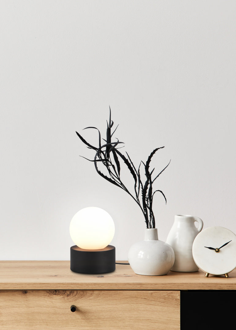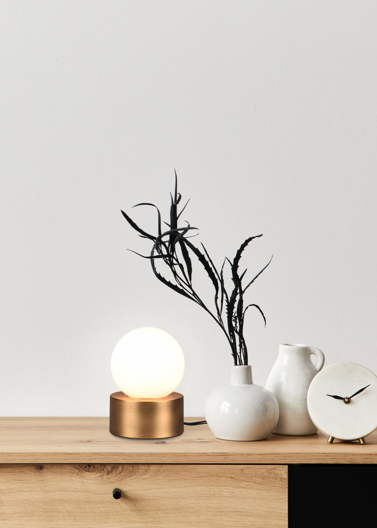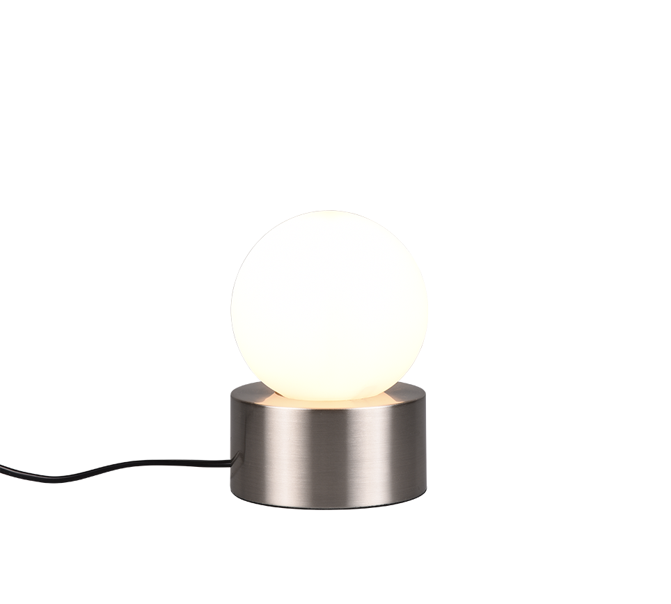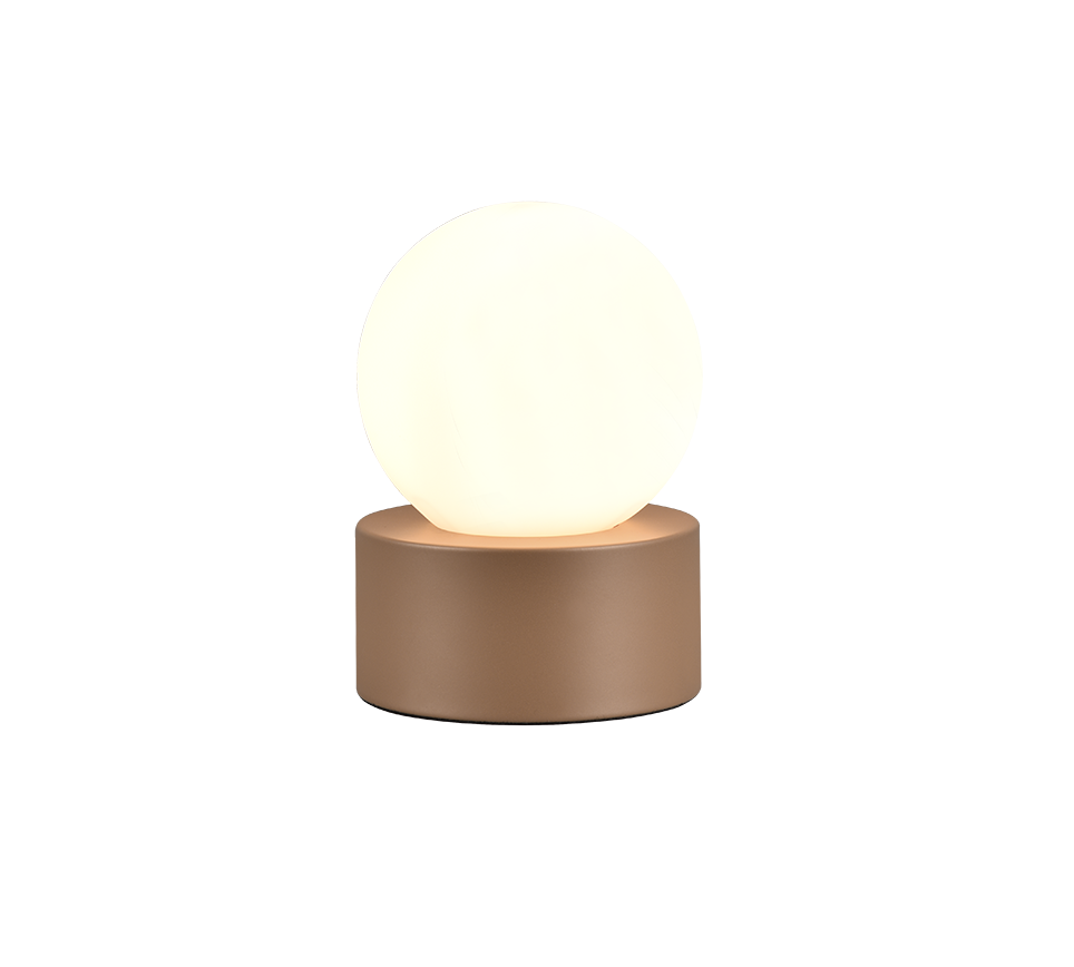 The COUNTESS table lamp impresses with its simple and classically inspired shape. The small spherical glass emits a pleasant light that creates a cosy lighting atmosphere. Equipped with a practical on/off touch function, this table lamp can be placed anywhere. The white glass shade creates a great contrast to the metal base in coffee. The use of LED light sources is recommended for energy-saving lighting. These are an ideal alternative to conventional halogen light sources and offer high light quality and energy savings of up to 80%. With LED light sources, you also benefit from a long service life and low heat generation while protecting the environment.
