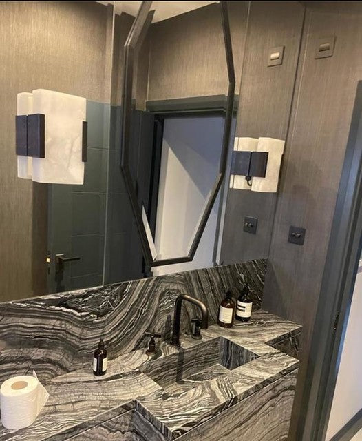 Kelly Wearstler's Covet series celebrates the natural beauty of alabaster and its subtle variations in color. Accented with metal prong settings in varying finishes, the organic carved alabaster flush mounts, sconces, chandeliers and pendant lights embody easy refinement. The minimalist forms will add a poetic touch to all interiors, including a range of pieces designed especially for elegant bathrooms.