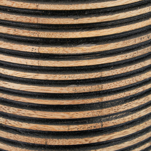This natural mango wood table lamp features a textured hoop design with an elegant white linen lampshade. The table lamp makes use of natural wood grain, and with the carved grooves and linen fabric, texture is in abundance in this stunning lamp. Crafted in India with a modern yet cosy aesthetic, this statement piece will draw the eye in a range of interiors, from Scandi to Coastal.