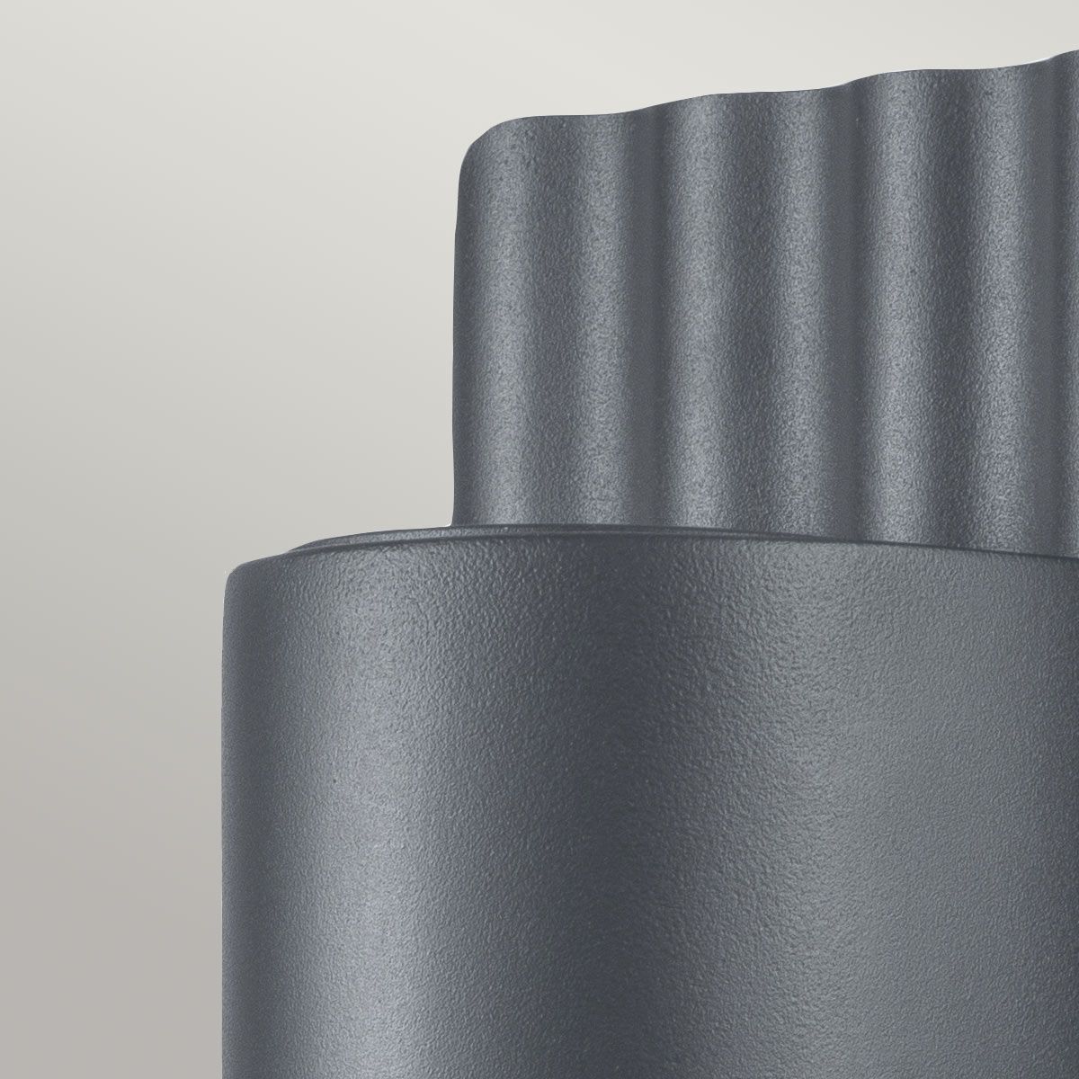 Dali is a modern and minimalistic wall lantern that is IP44 rated for exterior use. It has 2 x GU10 lamps to provide an up and down light effect against a wall. This exterior wall light is made of 304 grade stainless steel and is finished in Grey paint. The ribbed back plate and simple tubular shade and is part of the Elstead Coastal Collection with a 15 year guarantee.