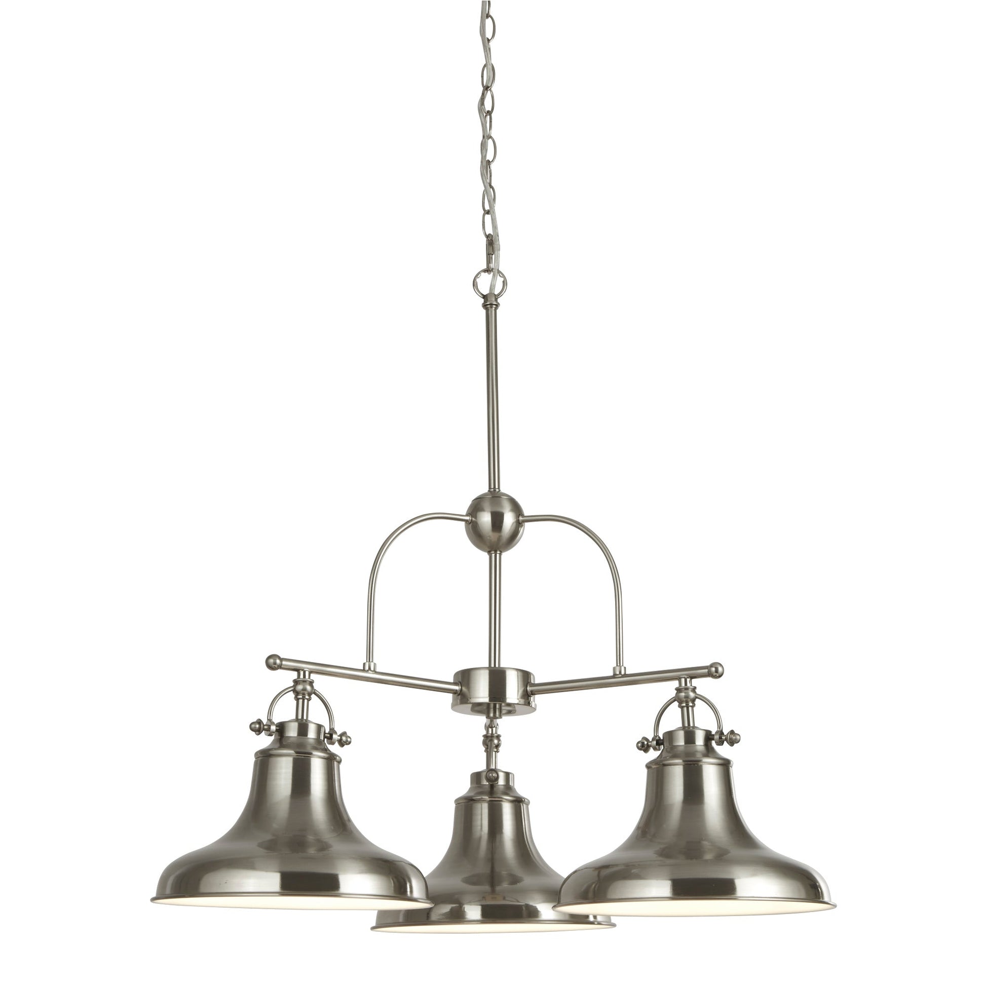 The simple Dallas 3 light pendant will be a welcome addition to any kitchen or dining area. A modern take on a traditional design, this 3 light satin silver pendant is inspired by American diners, giving a retro feel to any home. Height adjustable, this pendant can be adapted to hang low over a kitchen island or dining table.