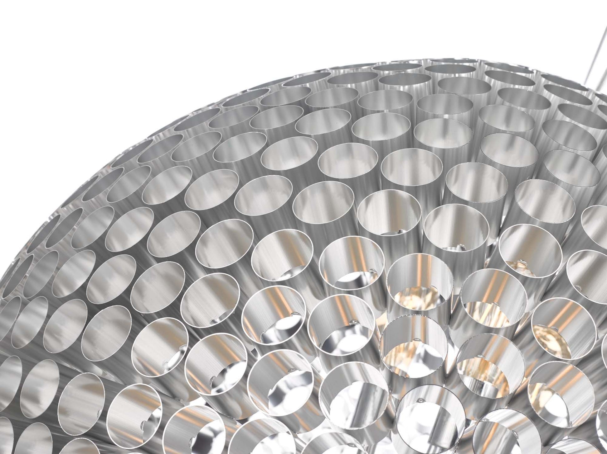 The Serafina 6 Light Pendant Brushed Chrome Large is a circular pendant constructed of hundreds of tubes creating a fascinating almost animated effect. A unique fitting that is perfect as statement piece with a brushed chrome finish.