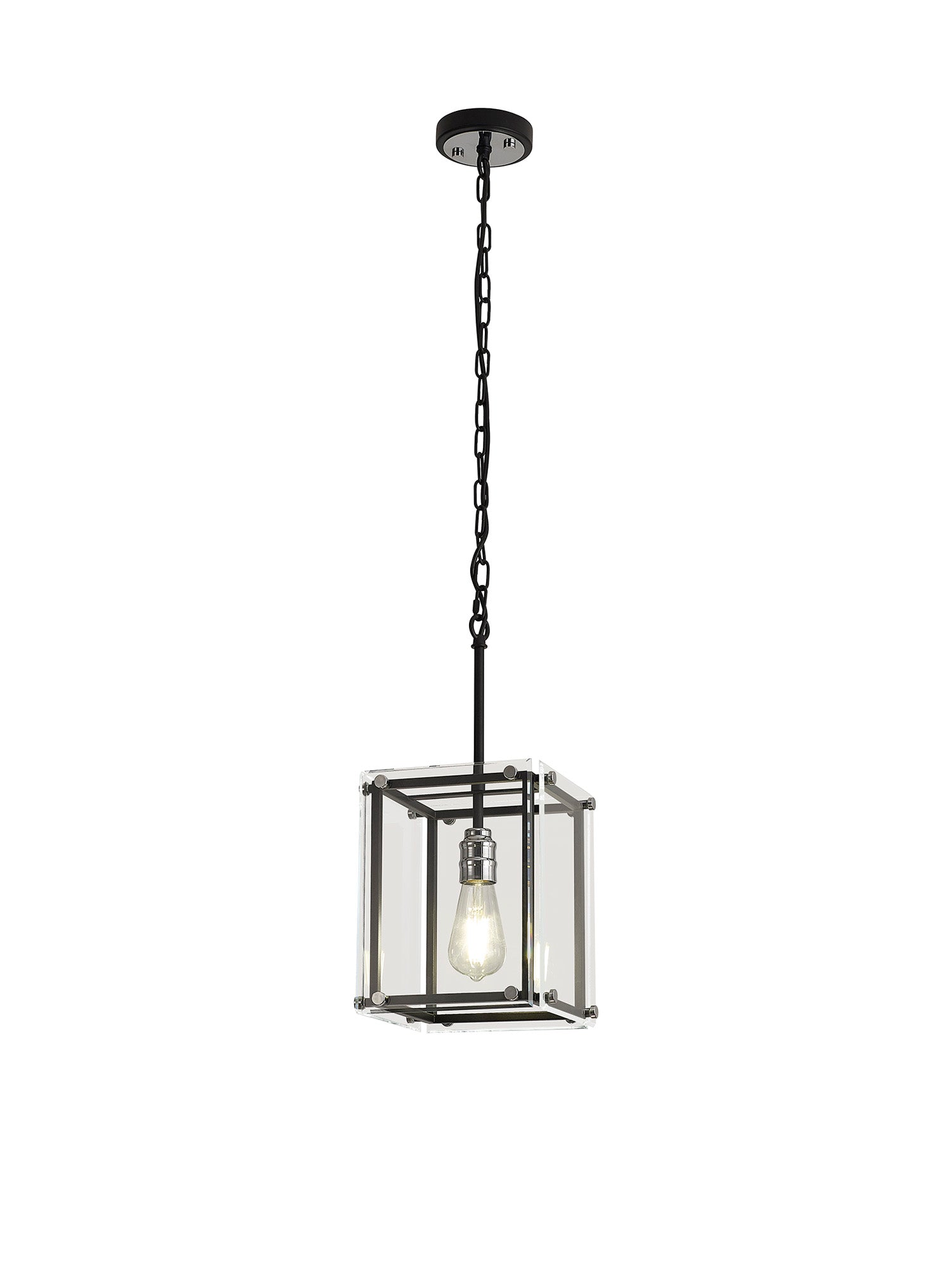 Delhi Pendant Light/Semi Flush Ceiling Light, 1 Light E27, Matt Black & Chrome & Clear Glass