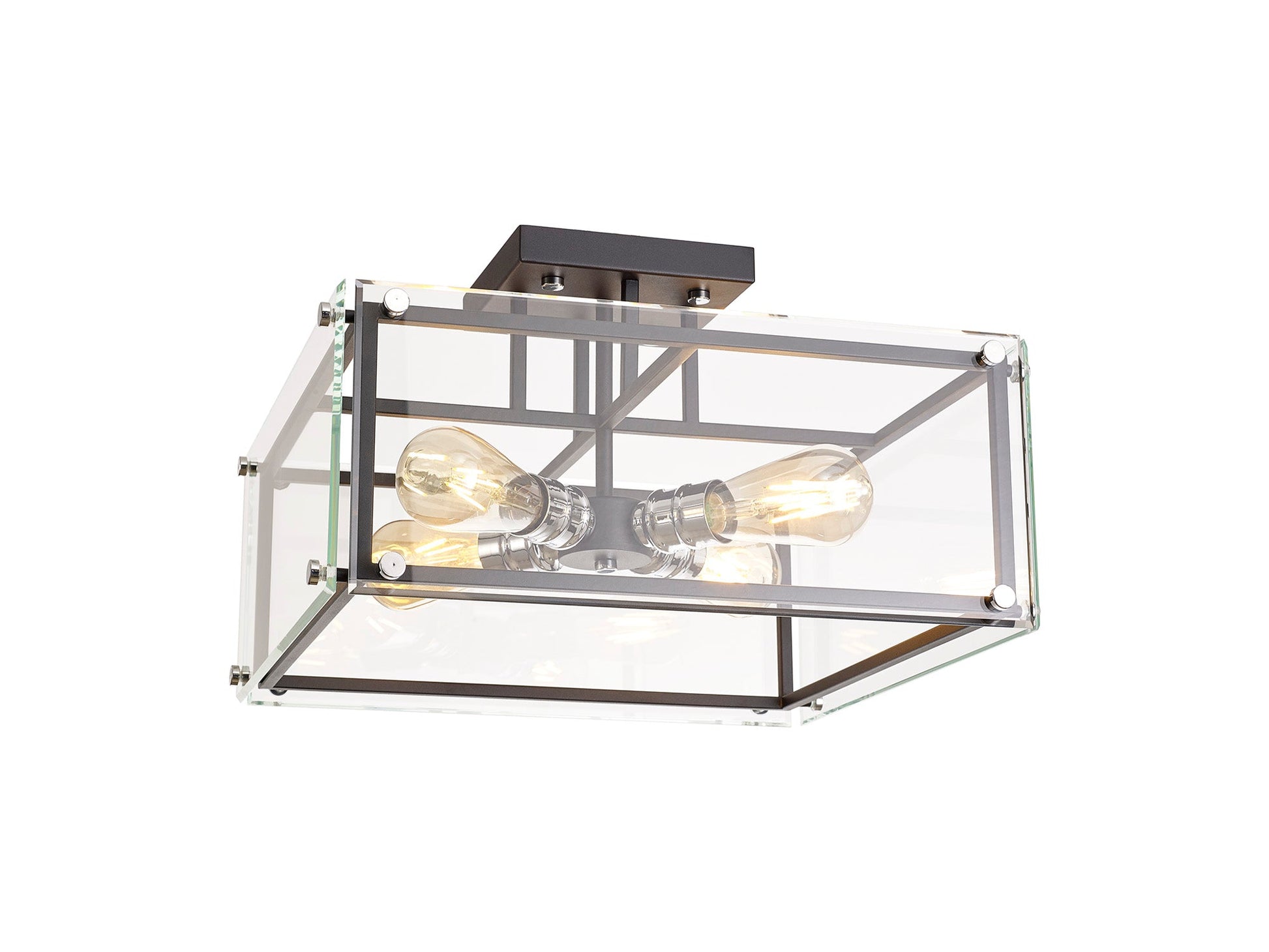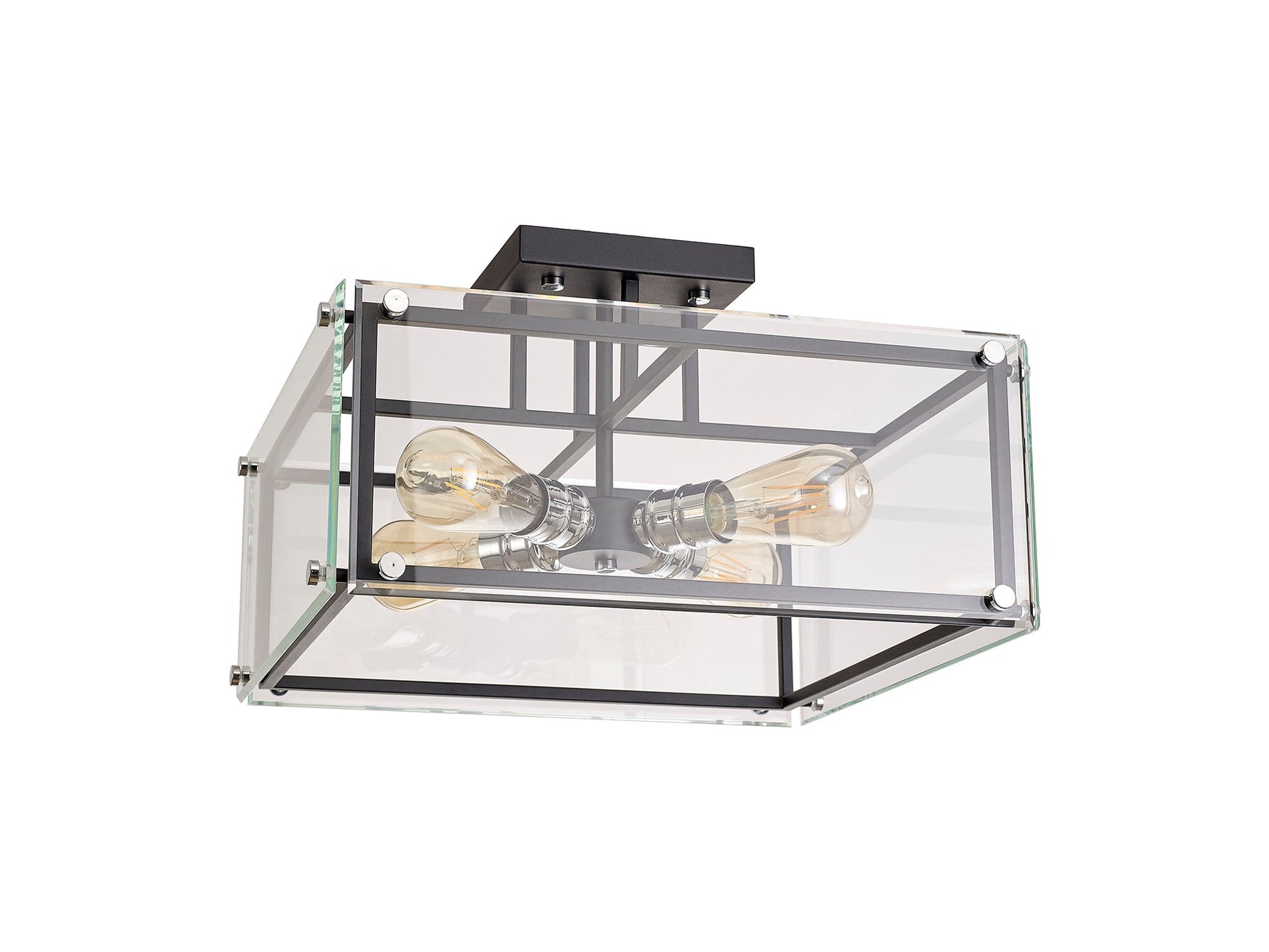 Delhi Semi Flush, 4 Light E27, Matt Black & Chrome & Clear Glass