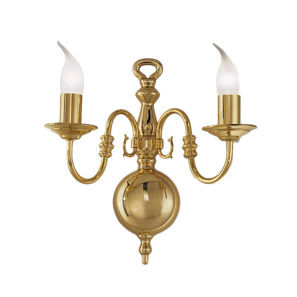 Polished brass Flemish style fittings with brass candle tubes which can be removed to enable glass to be used