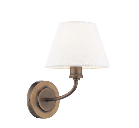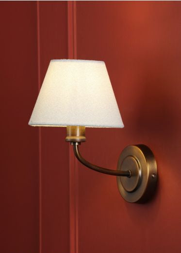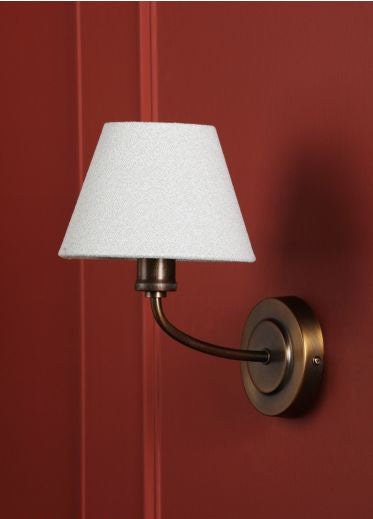 This gorgeous wall light adds layers of homely luxury with its textured boucle fabric shade in warm cream cotton. The antique bronze finish offers a traditional, timeless appeal, and can be paired with the matching table lamps and floor lamps in the Denston range for a cohesive yet inviting ambience.