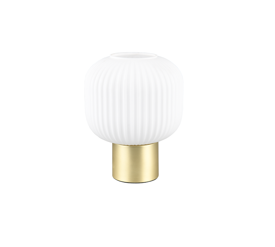 The eye-catching glass shade of the DIVA table lamp adds a special charm to your interior. Elegantly placed on a sideboard, it attracts attention as an impressive eye-catcher. The special shape and design of the glass diffuses the light softly and glare-free, creating a cosy play of light. This warm lighting atmosphere, paired with the timeless design, will quickly make DIVA a favourite in your home. The glamorous combination of matt brass and white opal glass gives the light an elegant and discreet look. The use of LED light sources is recommended for energy-saving lighting. These are an ideal alternative to conventional halogen light sources and offer high light quality and energy savings of up to 80%. With LED light sources, you also benefit from a long service life and low heat generation while protecting the environment.