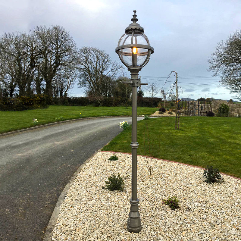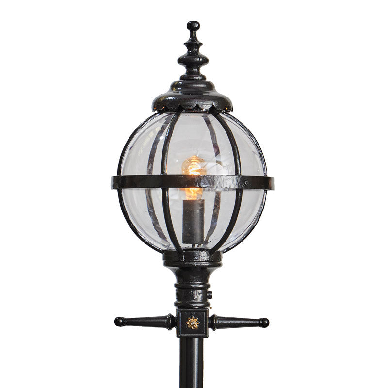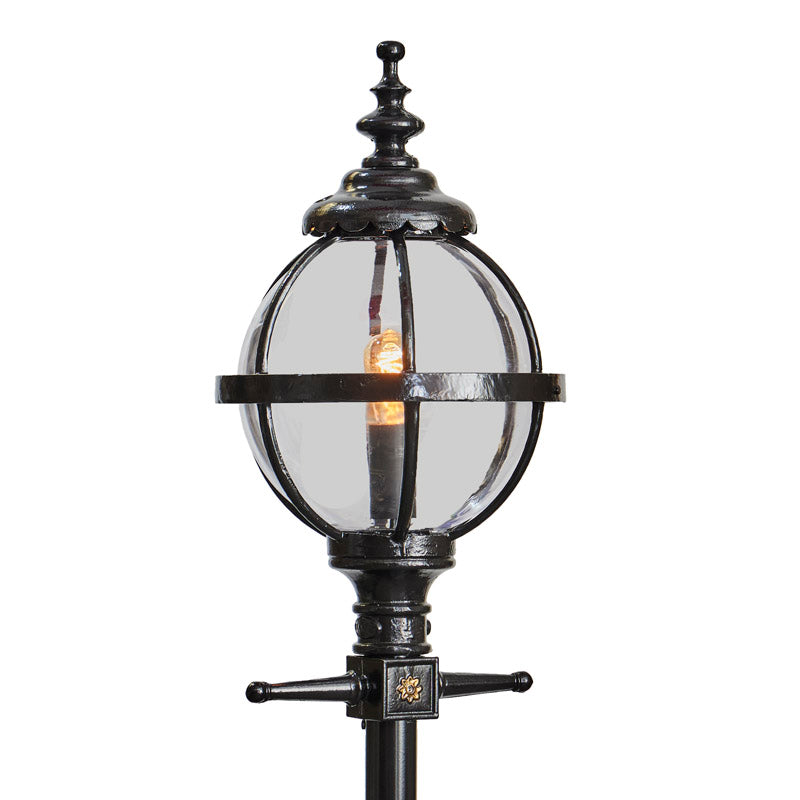 Victorian globe lamp post in cast iron 1.4m in height The design for the Heritage range of lighting has been taken directly from a Victorian original lamp post with a cast iron globe. This classic and unique design will add instant style and vibrancy to any outdoor area, the vintage globe and cast iron embellishments are also very versatile with many classical style properties.