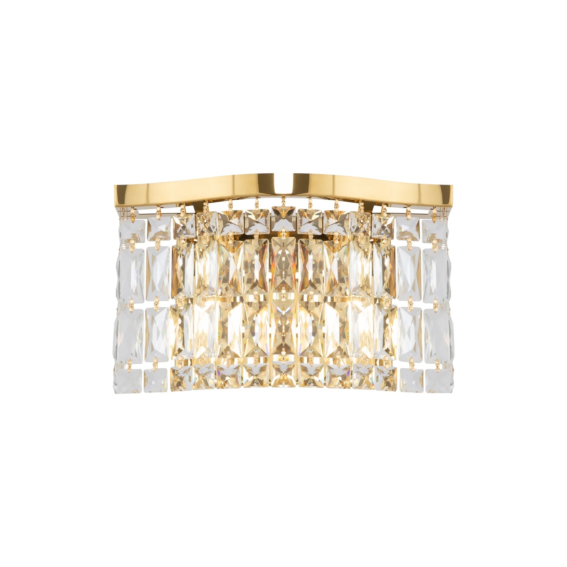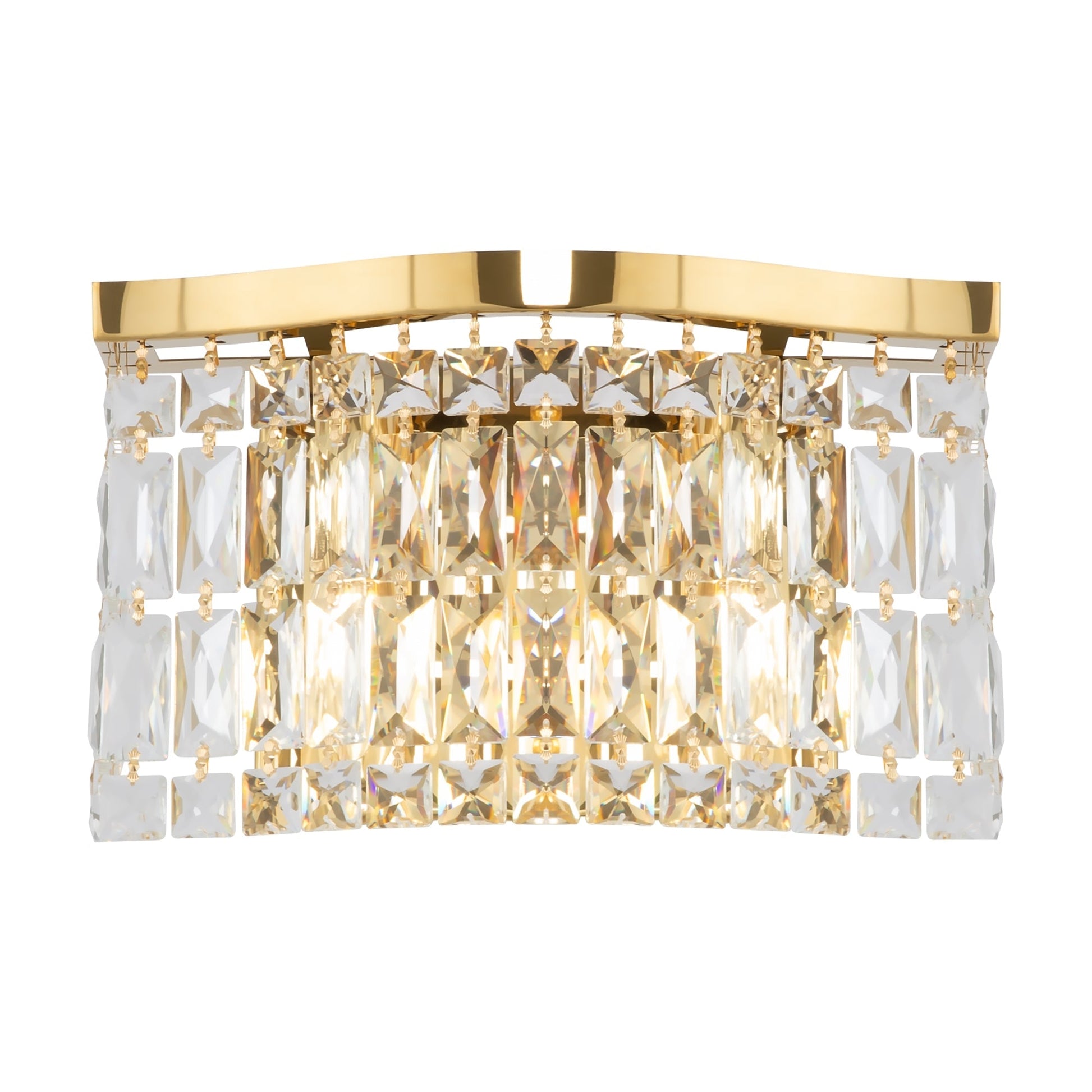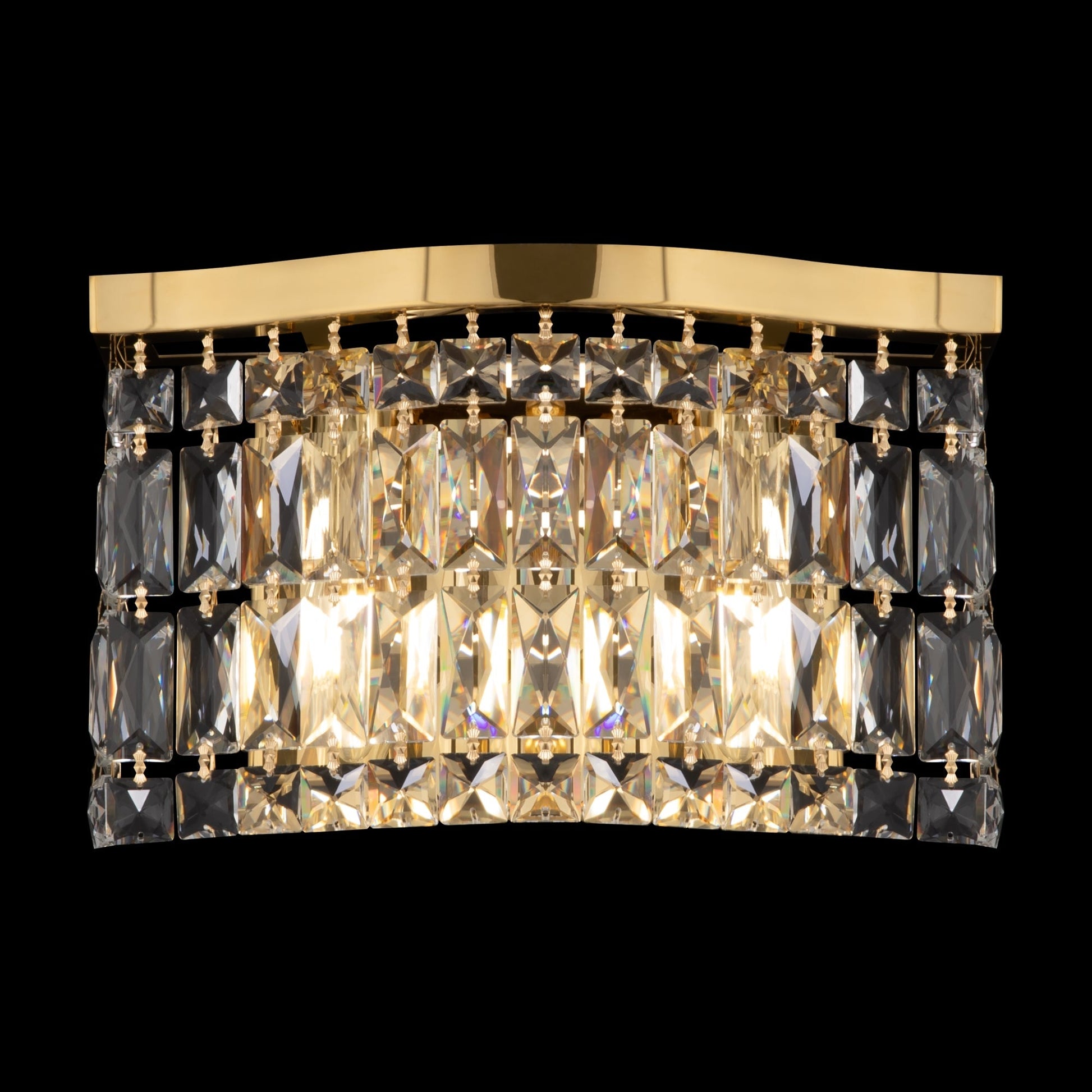 Metal fittings in two colors: chrome, gold. Decorative elements— clear crystals. Ceiling models have two tiers of pendants. Height of the pendant chandelier is adjustable using cable.