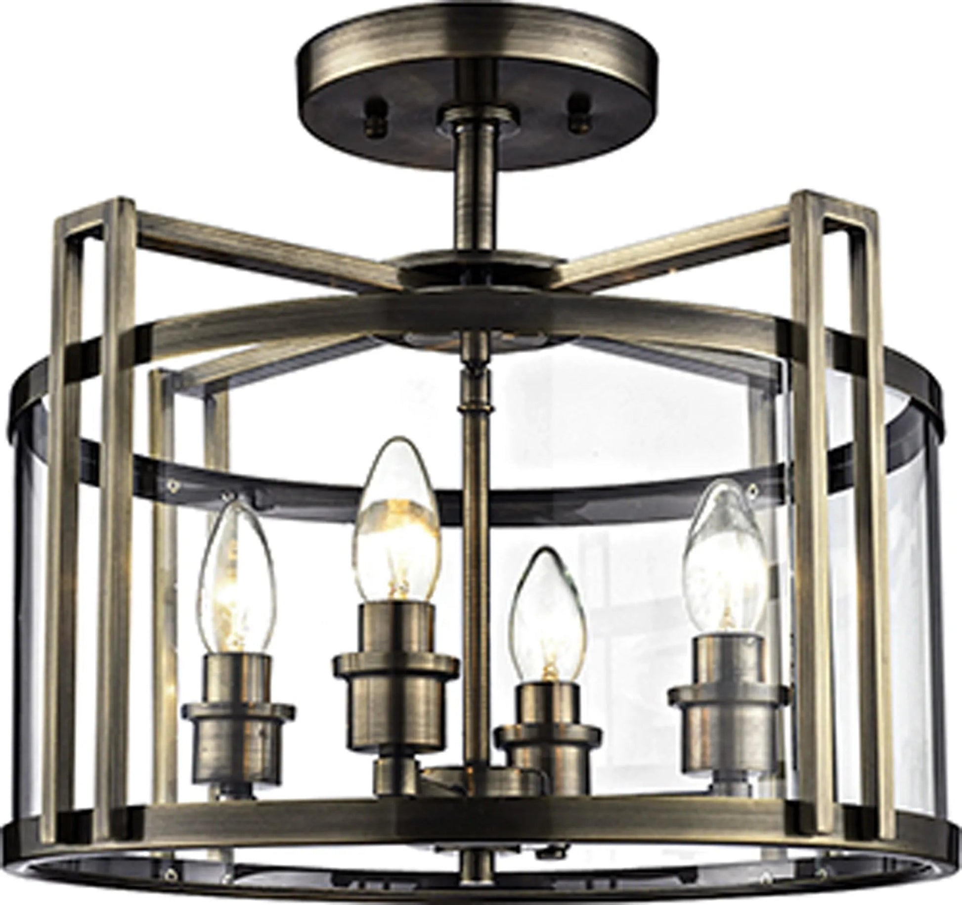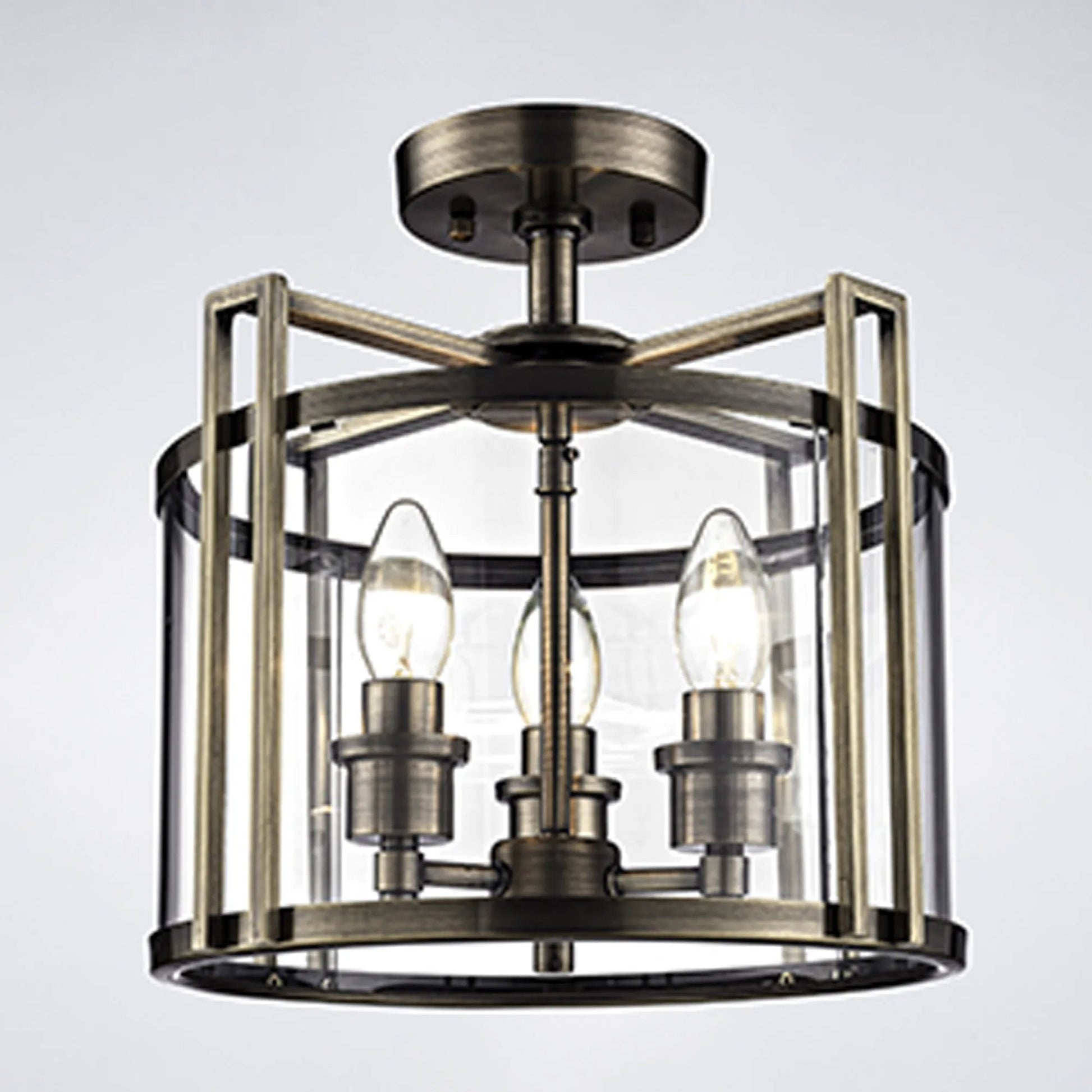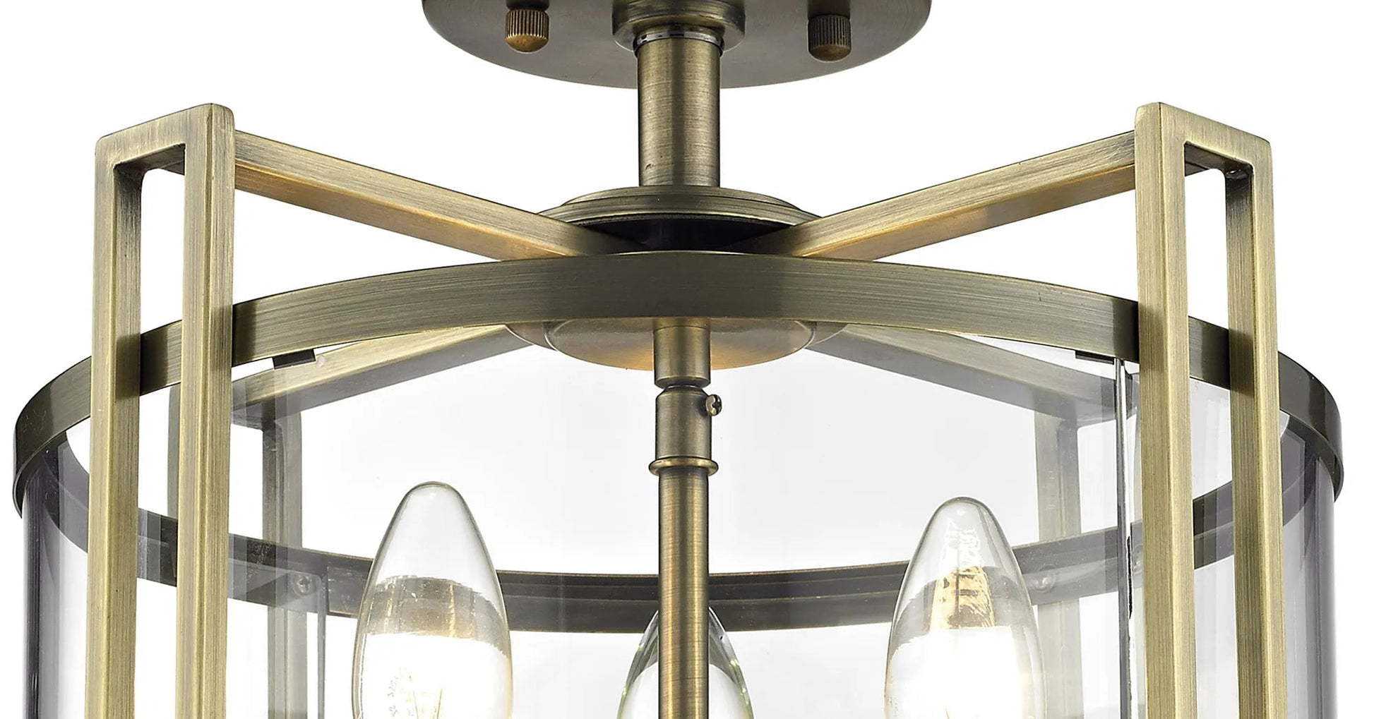 Brief Description | Eaton Glass Semi Flush 3 Light Antique Brass |