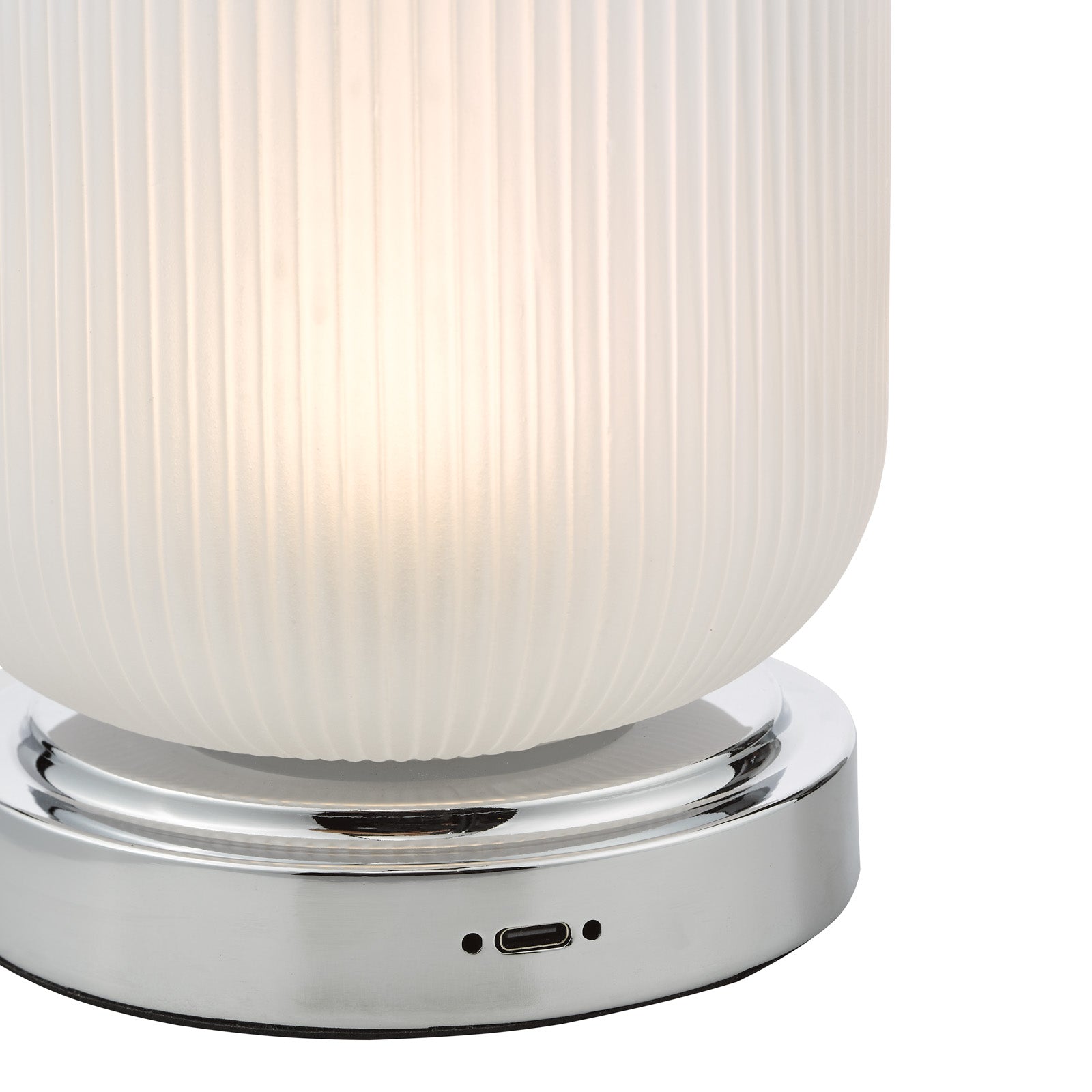 Echo Rechargeable Table Lamp Polished Chrome and Ribbed Glass Integrated LED