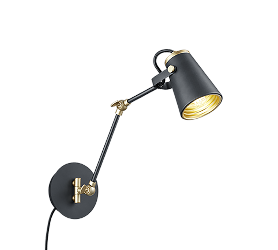 The EDWARD wall light has a modern and simple design. The successful design has a particularly decorative effect on the surroundings and creates a modern and cosy atmosphere. Its areas of application are versatile, as the wall light has a projection of 50 cm and has two swivelling and tilting joints as well as a light head that can be individually aligned. This makes the EDWARD ideal as a reading light next to the bed or in the reading corner. The luminaire is also equipped with the FLEXconnect feature. This means that the light can be attached to the wall in any position as usual and operated via a cord cable or connected directly to the fixed connection without a supply cable. In this case, the cable can be removed from the luminaire. The light is made of metal and comes in a modern colour combination of matt black and gold. The combination creates stylish lighting accents and gives living spaces an extraordinary feel-good effect. For energy-saving lighting, it is recommended to use an LED illuminant. These are an optimal alternative to conventional halogen lamps and stand for a high quality of light and energy savings of up to 80%. In addition, LED lamps help you benefit from a long service life, low heat generation and at the same time protect the environment.