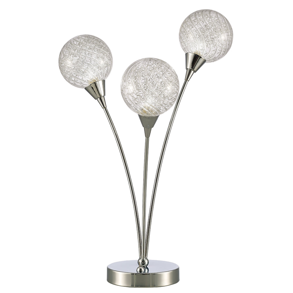 Chrome finish fittings with clear glass spheres filled with fixed, spun glass strands. Suppled with G9 halogen lamps which are suitable for dimming.