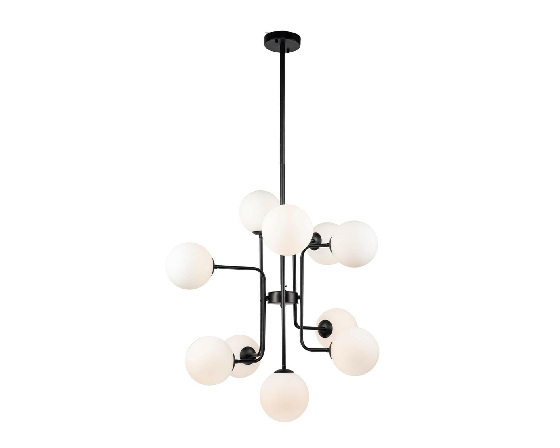 Enhance your interior with this Matt Black Steel, White Glass Globe Shades Striking and sophisticated, the Eliot Pendant Lamp is an elevated affair. Unmistakably modern yet providing the perfect interior ambience, the Eliot is an inspiring addition assembled from beautiful matt black finished steel and glamourous glass. Opulently adorned piece, complete with stunning glass spheres, this pendant light promises to illuminate your abode from all angles for a cosmopolitan space with an urban edge. (Light bulbs not included.. Requires 10 × LED G9,Max 5W).