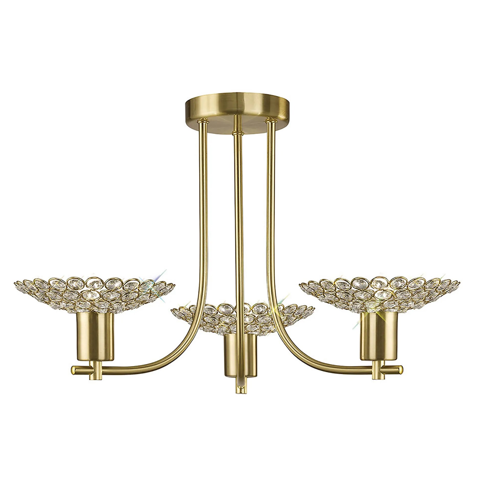 Ellen Semi Ceiling 3/5Lt G9 Satin Nickel & Crystal/Satin Brass & Crystal