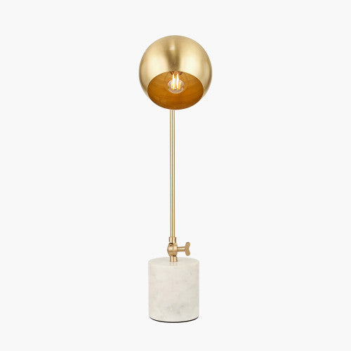 This exquisitely contemporary yet functional table lamp, uses gold metal and white marble. The multi-directional lamp head and stem can be easily adjusted to meet your lighting needs. Made in India, the Eloise lamp uses elegant lines and soft curves to create a stylish and sophisticated light. Illuminate your lounge or home office with this stylish piece.