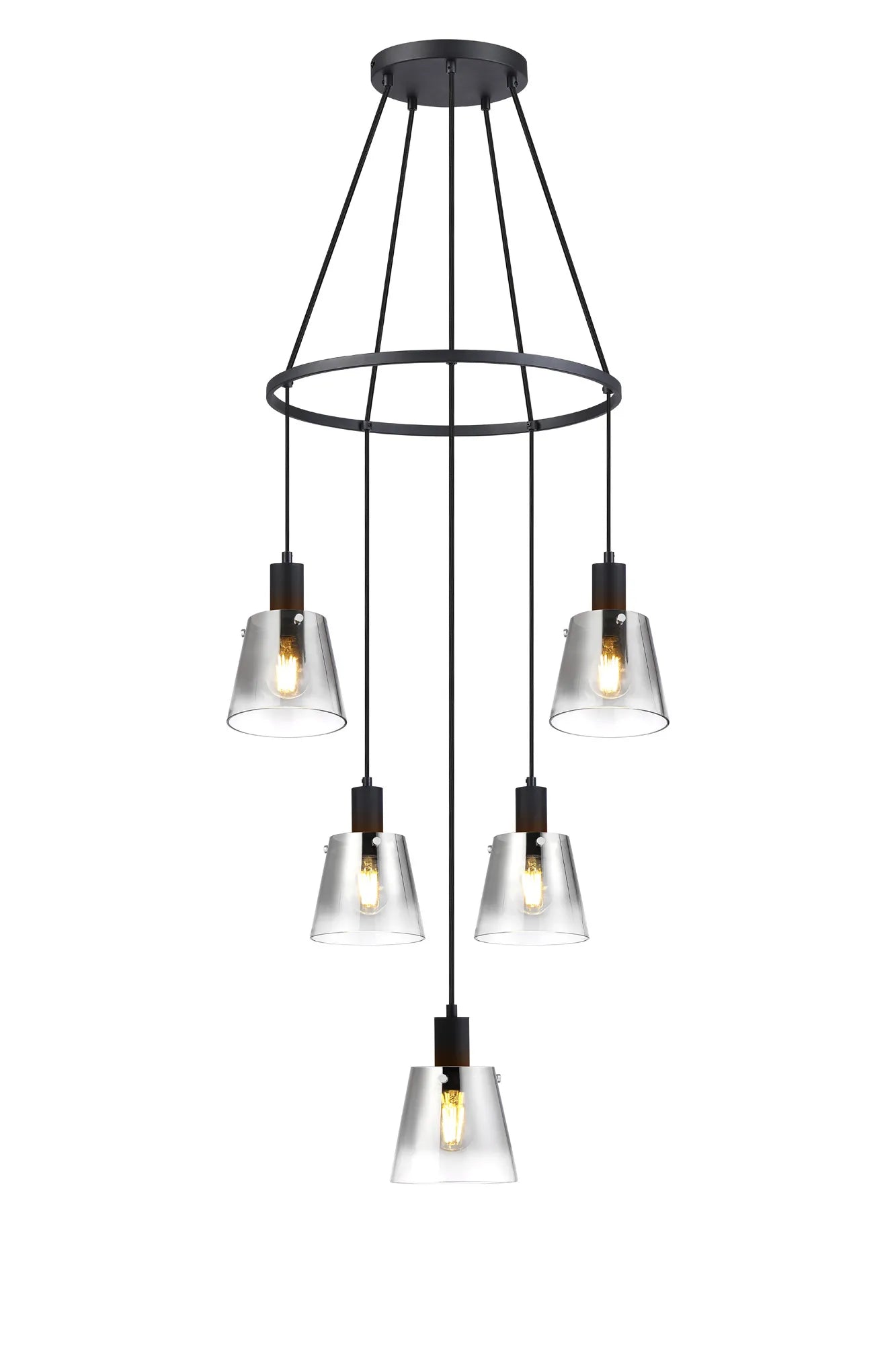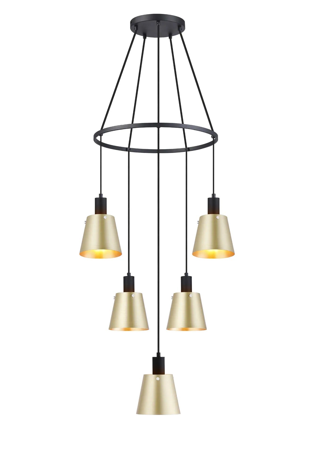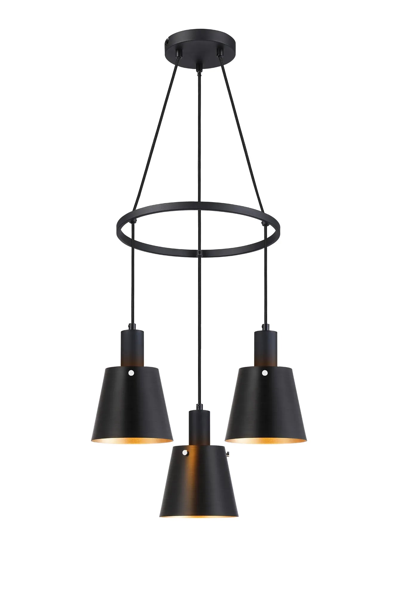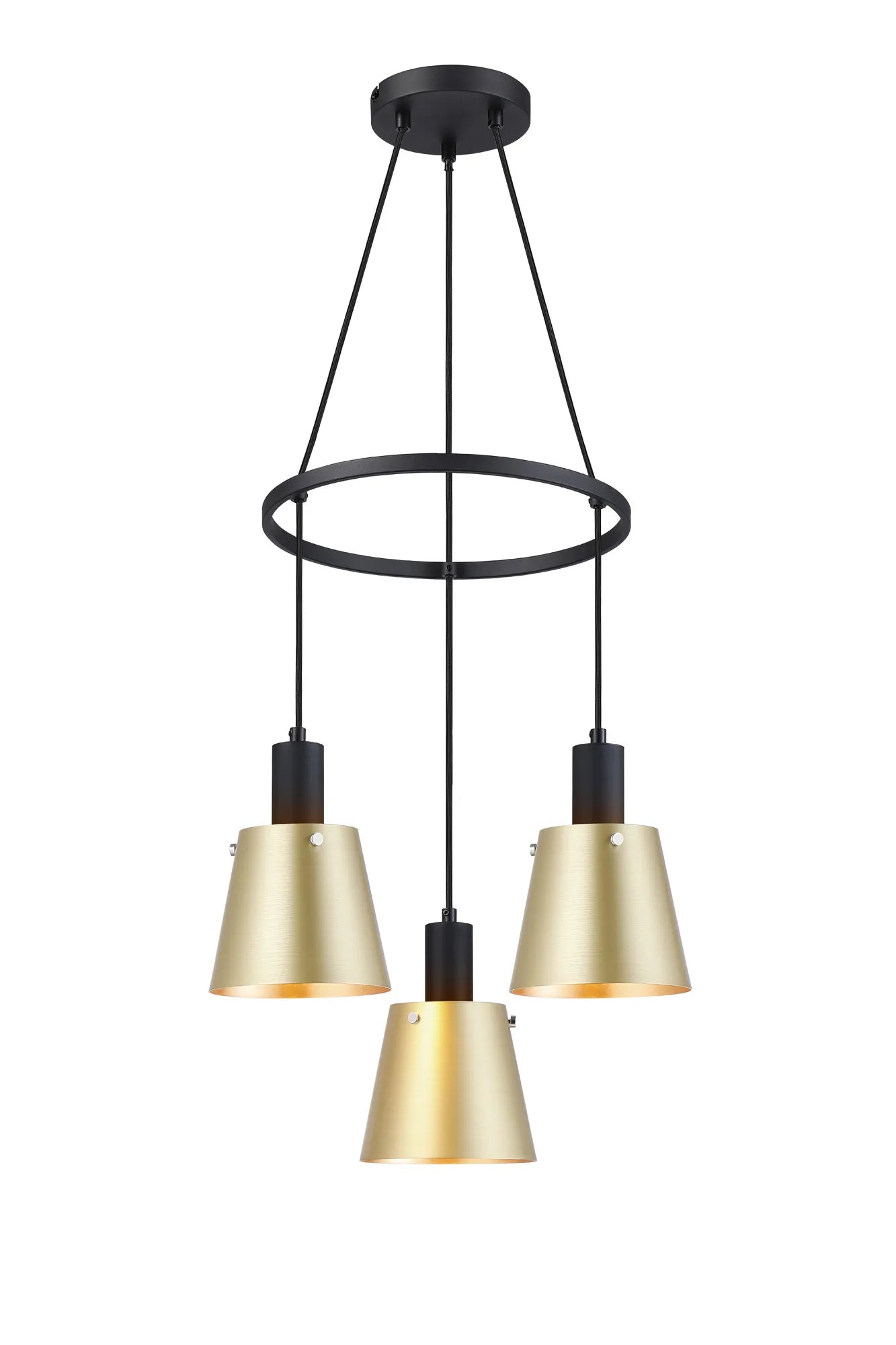 Brief Description: Epsom Ring Pendant, 16cm x 14cm Shade, 3 x E27, Sand Black/Black/Gold Metal Shade