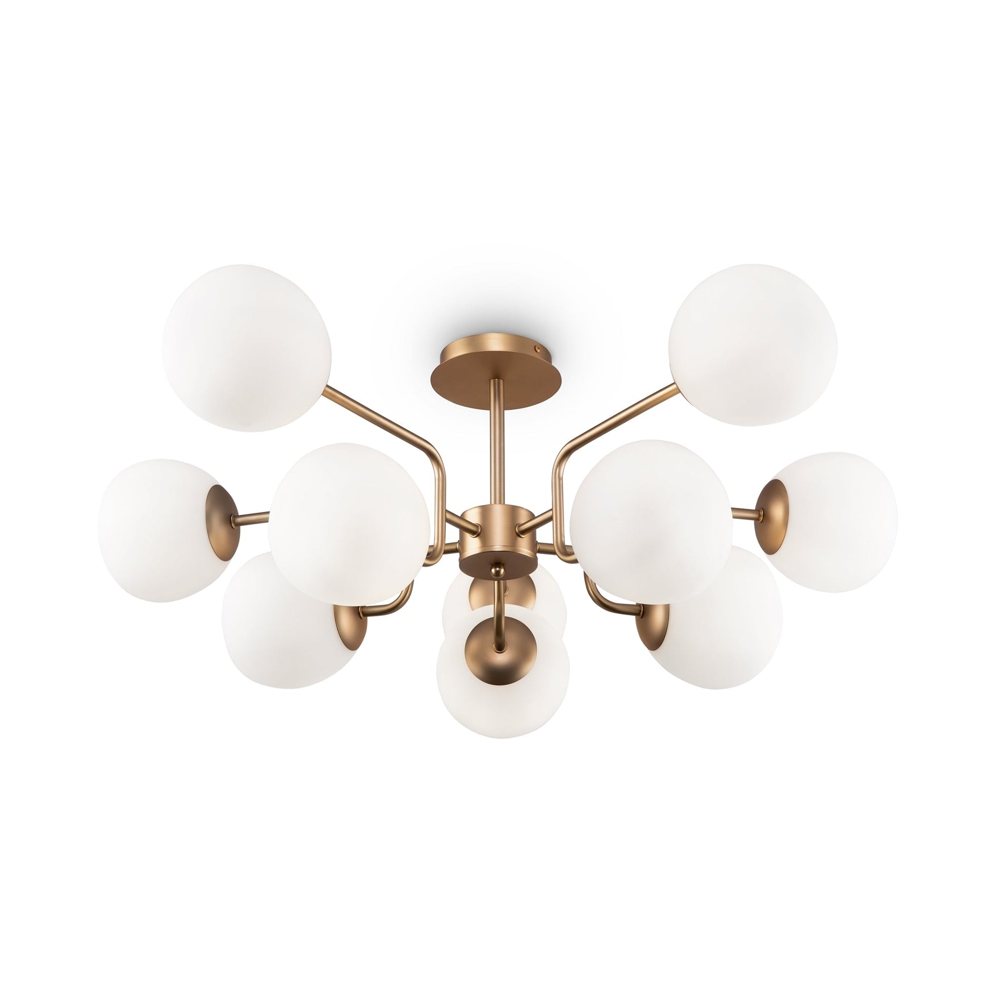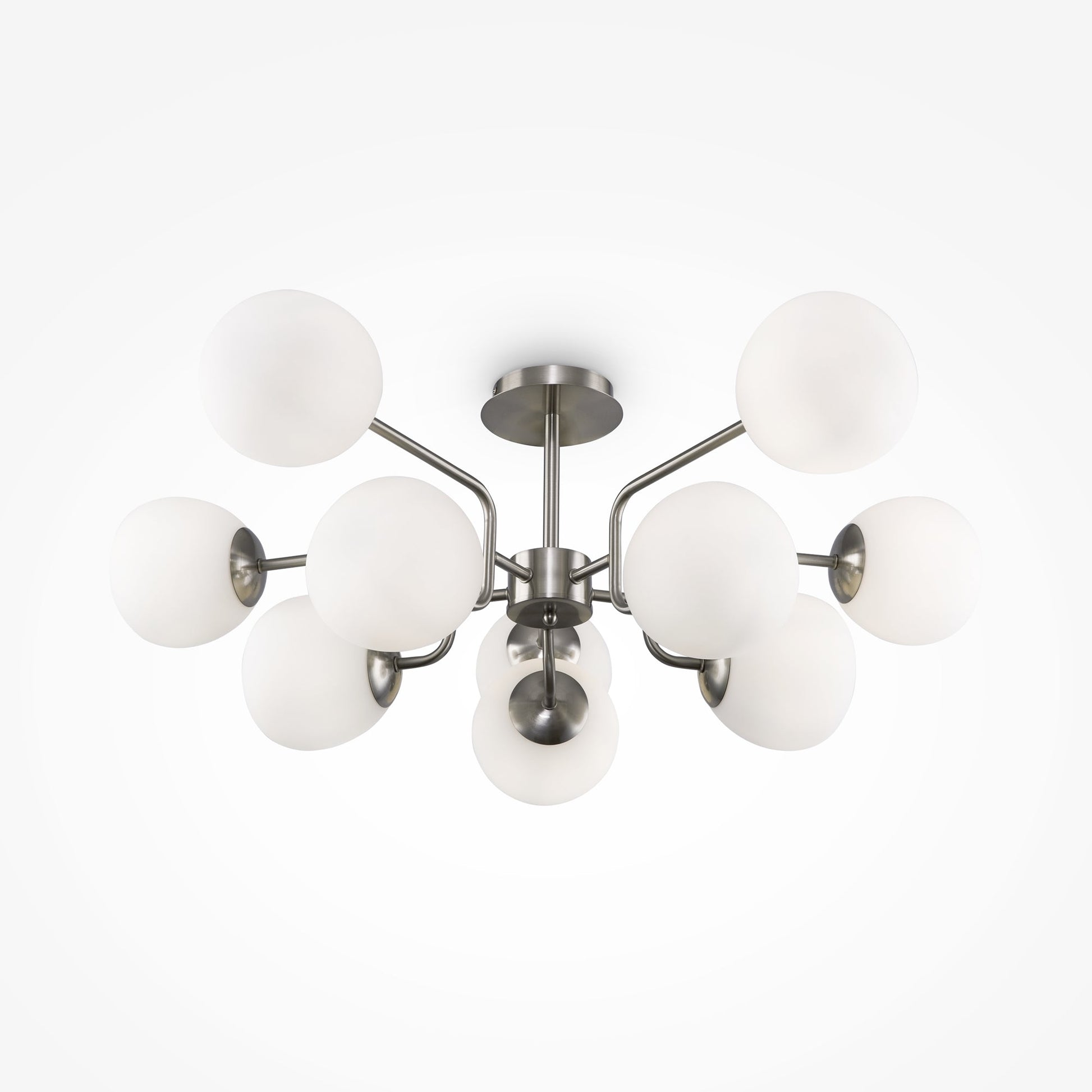 Metal fittings, shades — nickel, brass. Dome lamps — blown glass of white color. Wide range. The floor and table lamps have a dome lamp with adjustable position. Adjustable height.
