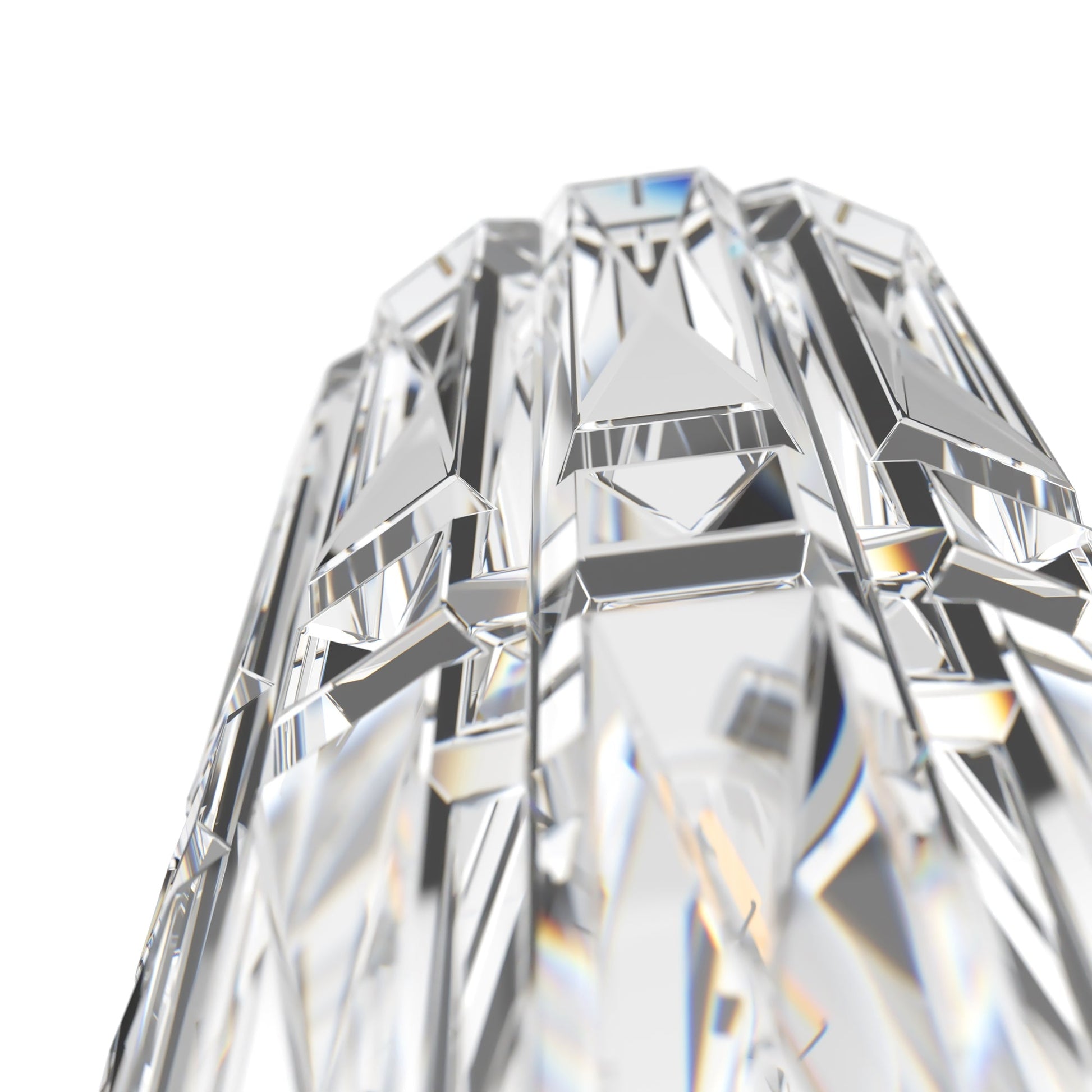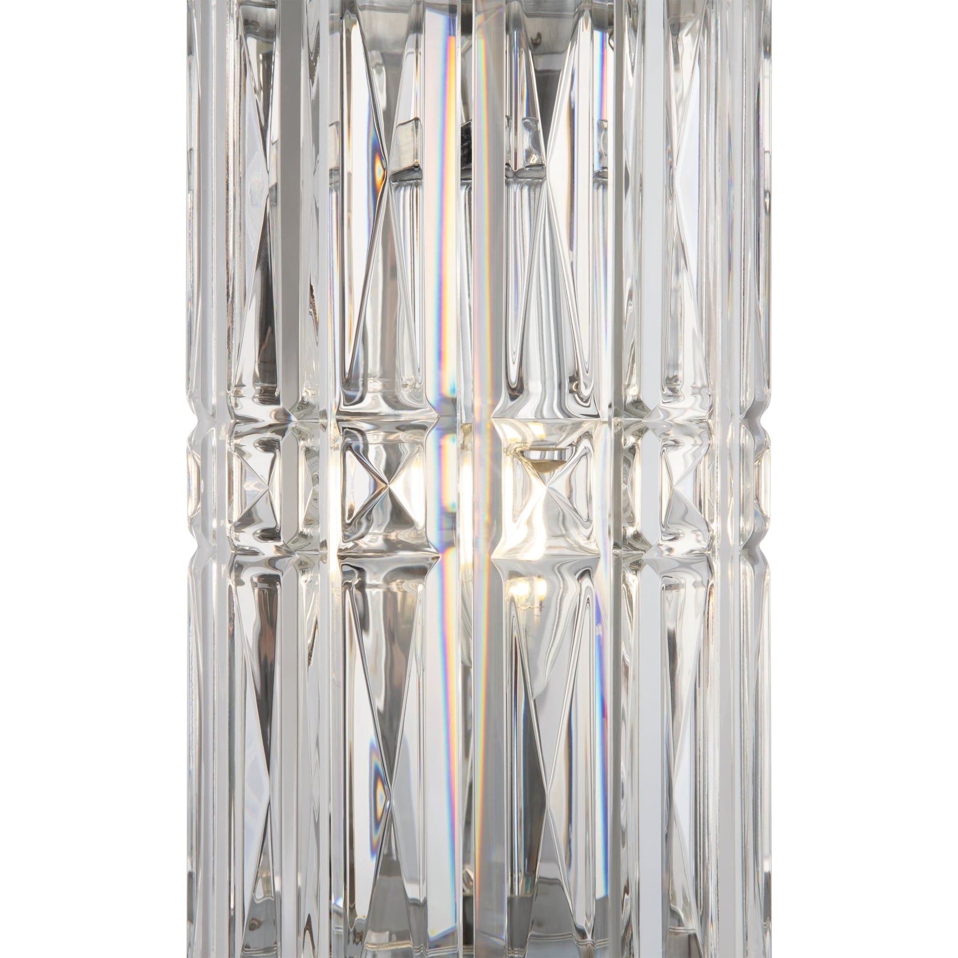 Fittings material— metal, shades — chrome and gold. Decorative elements— transparent glass crystals. Architectural faceting of decorative elements. Light source — lamps with E14 base.
