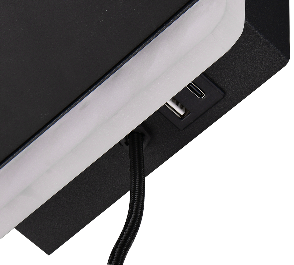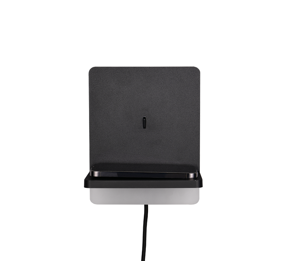 FAIRFIELD wall light - for a cosy flair around the bed! Its simple design and indirect light contribute to relaxation in the bedroom and provide cosy brightness, perfect for relaxing hours of reading in the evening. With its integrated inductive charging station, the light enables easy charging of compatible smartphones. Alternatively, it offers a USB and USB-C connection with charging option. Thanks to the FLEXconnect feature, the wall light is extremely versatile - it can be operated both via a switch and without a cable via the fixed connection. In this case, operation is via a conventional wall switch. The integrated SWITCH dimmer makes it possible to adjust the FAIRFIELD to three brightness levels (100 %, 50 % and 25 %) and adapt it to your needs. The simple design in matt black ensures that the light blends into any interior with ease. The luminaire also features modern LED technology, which is characterised by high light quality and energy efficiency. Compared to conventional halogen light sources, up to 80% of energy costs can be saved. LED light sources also have a long service life, produce less heat and protect the environment.