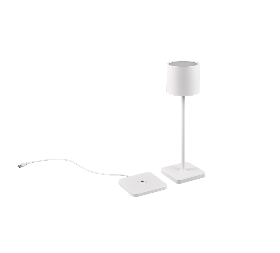 That certain something with the FERNANDEZ rechargeable luminaire. The battery operation of the table lamp allows flexible placement without any cables wherever a cosy lighting atmosphere is needed. The lamp is charged via a discreetly designed charging station. The mobile table lamp, which looks great on a garden table or on a dresser in your living room, has a 4-fold touch function that regulates the light in 3 brightness levels. In addition, infinitely variable adjustment of the light colour is possible. As the FERNANDEZ has IP44 protection, it is protected against splashing water and can therefore also be used outdoors. The reduced design in classic form makes the table lamp in matt black and white an adaptable decorative element. In addition, the luminaire features modern LED technology, which is characterised by high light quality and energy efficiency. Compared to conventional halogen lamps, up to 80% of energy costs can be saved. In addition, LED lamps help you benefit from a long service life, low heat generation and at the same time protect the environment.