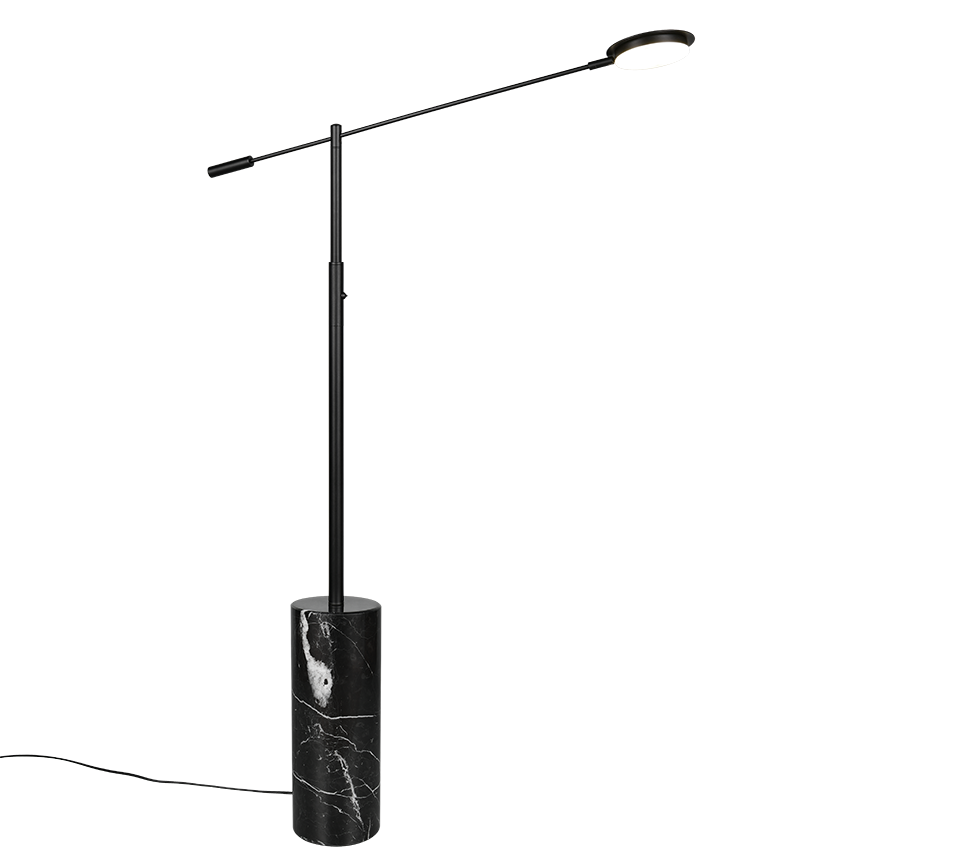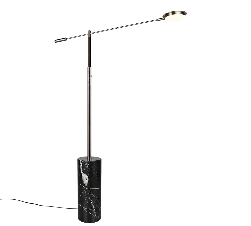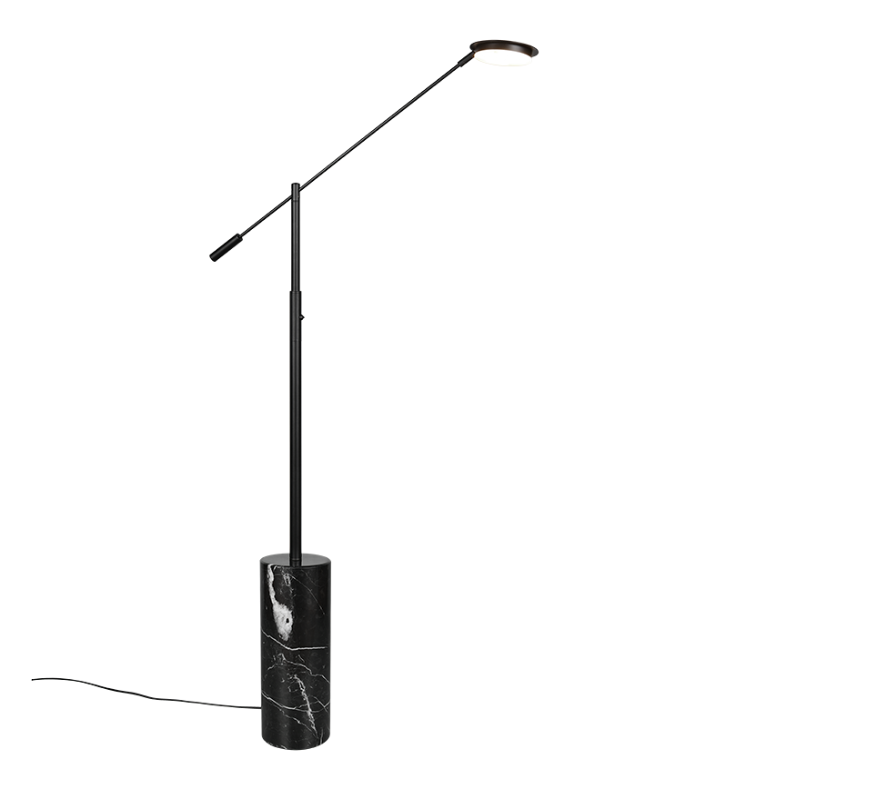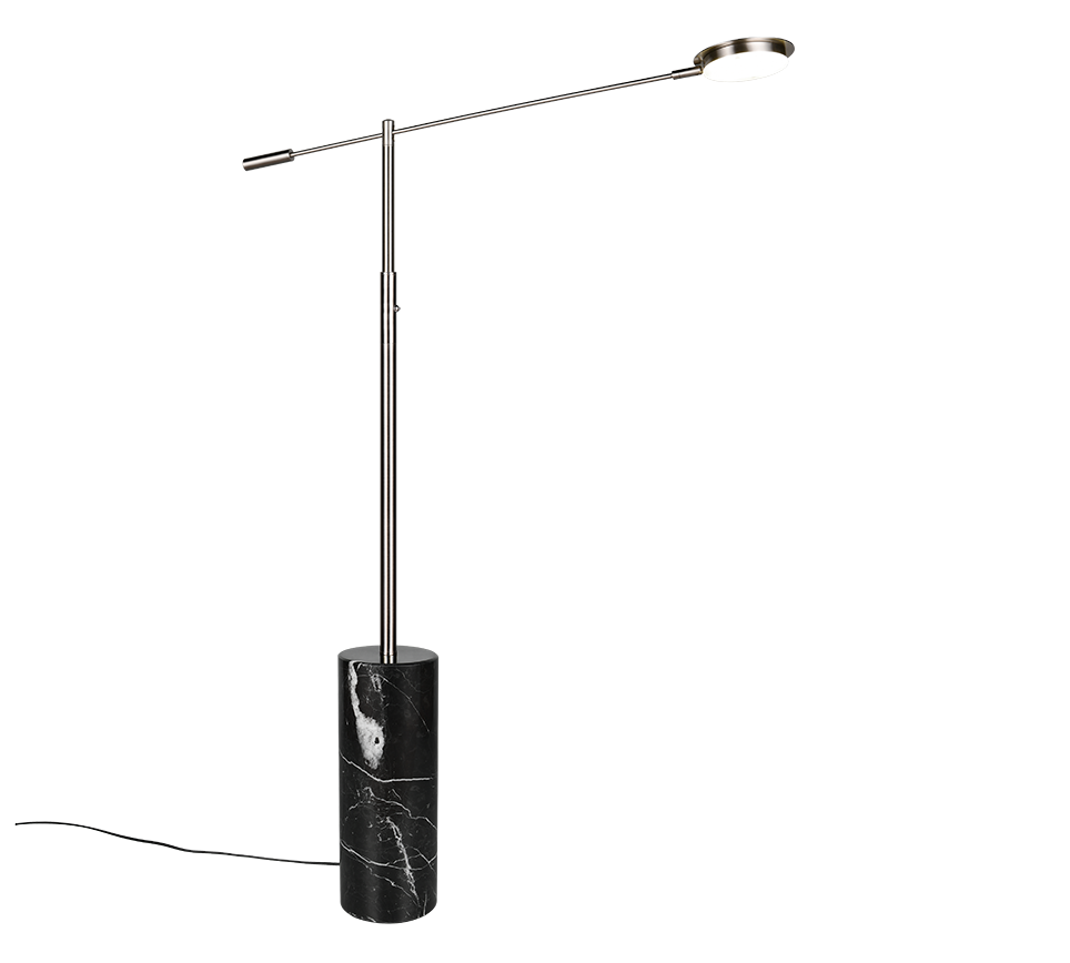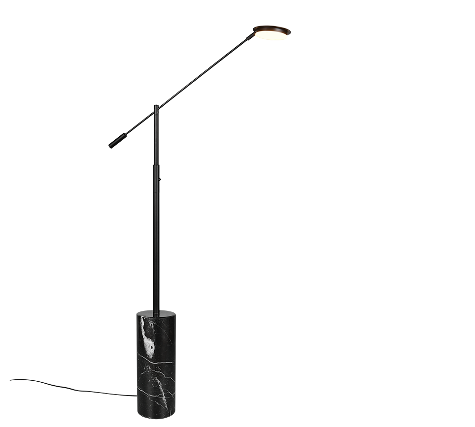 The FIORE floor lamp combines a sophisticated marble base with high-quality metal to create a harmonious combination that radiates timeless elegance. Its classic design blends seamlessly into any interior, making it a stylish highlight in any room. Thanks to the integrated sensor dimmer, the brightness can be infinitely adjusted, while the light colour can be set to different levels to create the perfect lighting for any situation. Whether next to a desk or sofa, FIORE is the ideal choice for anyone who values both design and functionality. The black marble base and matt black metal give the light a particularly elegant touch. The luminaire also features modern LED technology, which is characterised by high light quality and energy efficiency. Compared to conventional halogen light sources, up to 80% of energy costs can be saved. LED light sources also have a long service life, produce less heat and protect the environment.