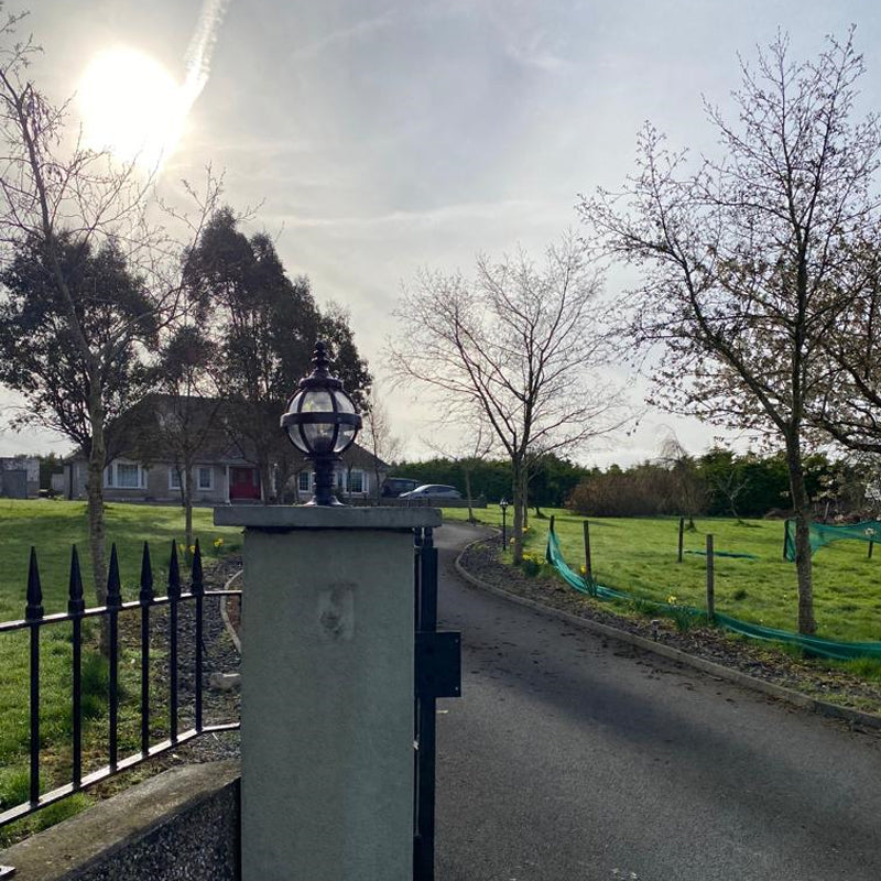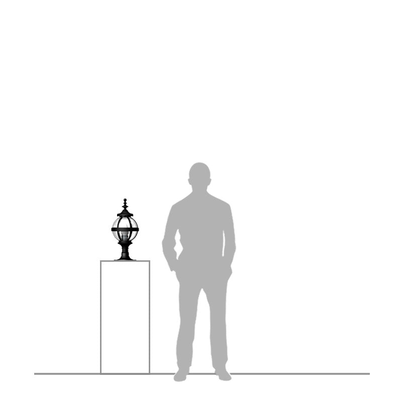 Victorian globe pier light in cast iron 0.48m in height for flat pier caps The design for the Heritage range of lighting has been taken directly from a Victorian original lamp post with a cast iron globe. This classic and unique design will add instant style and vibrancy to any outdoor area, the vintage globe and cast iron embellishments are also very versatile with many classical style properties.