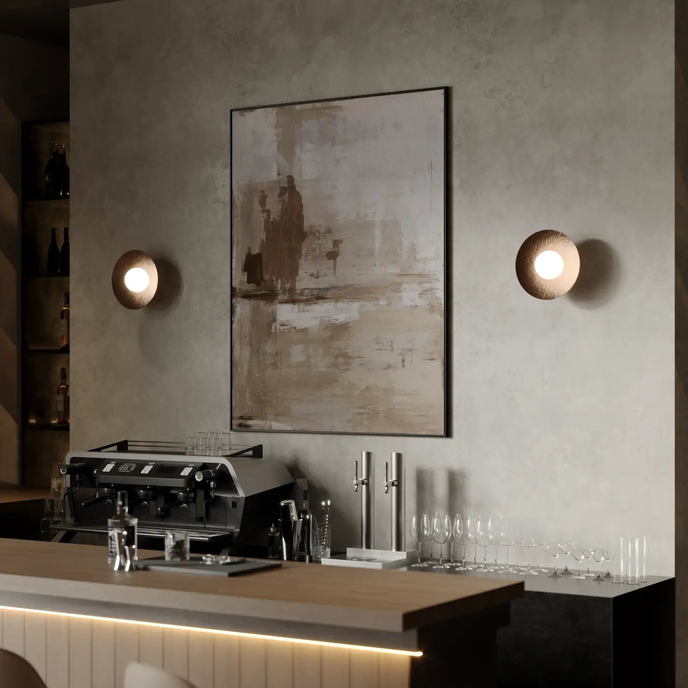 Vivid textures with a natural feel. Feel the warming glow of the Flume Wall Light casting pools of golden hues around your space. Sleek, furrowed creases unfurl outward, cascading down a strong current of light, gently diffused around your space for natural overtones.