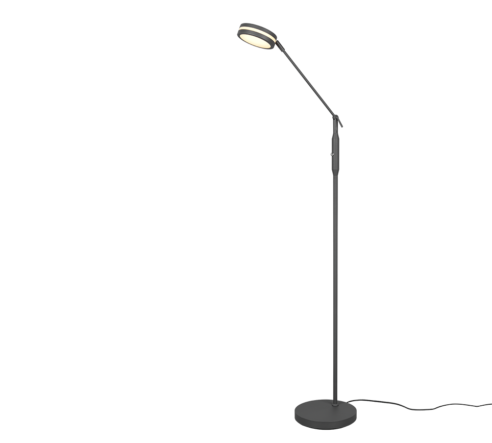 Practical, functional and stylish! The FRANKLIN light impresses with its modern, futuristic look. Placed next to the sofa or in the hallway, the floor lamp creates a pleasant lighting ambience thanks to a sensor dimmer that can be used to continuously adjust the brightness and light colour. The additional integrated memory function automatically resets the last set light scenario. Thanks to the classic anthracite colour scheme, the light can be combined with many furnishing styles. In addition, the luminaire features modern LED technology, which is characterised by high light quality and energy efficiency. Compared to conventional halogen lamps, up to 80% of energy costs can be saved. In addition, LED lamps help you benefit from a long service life, low heat generation and at the same time protect the environment.