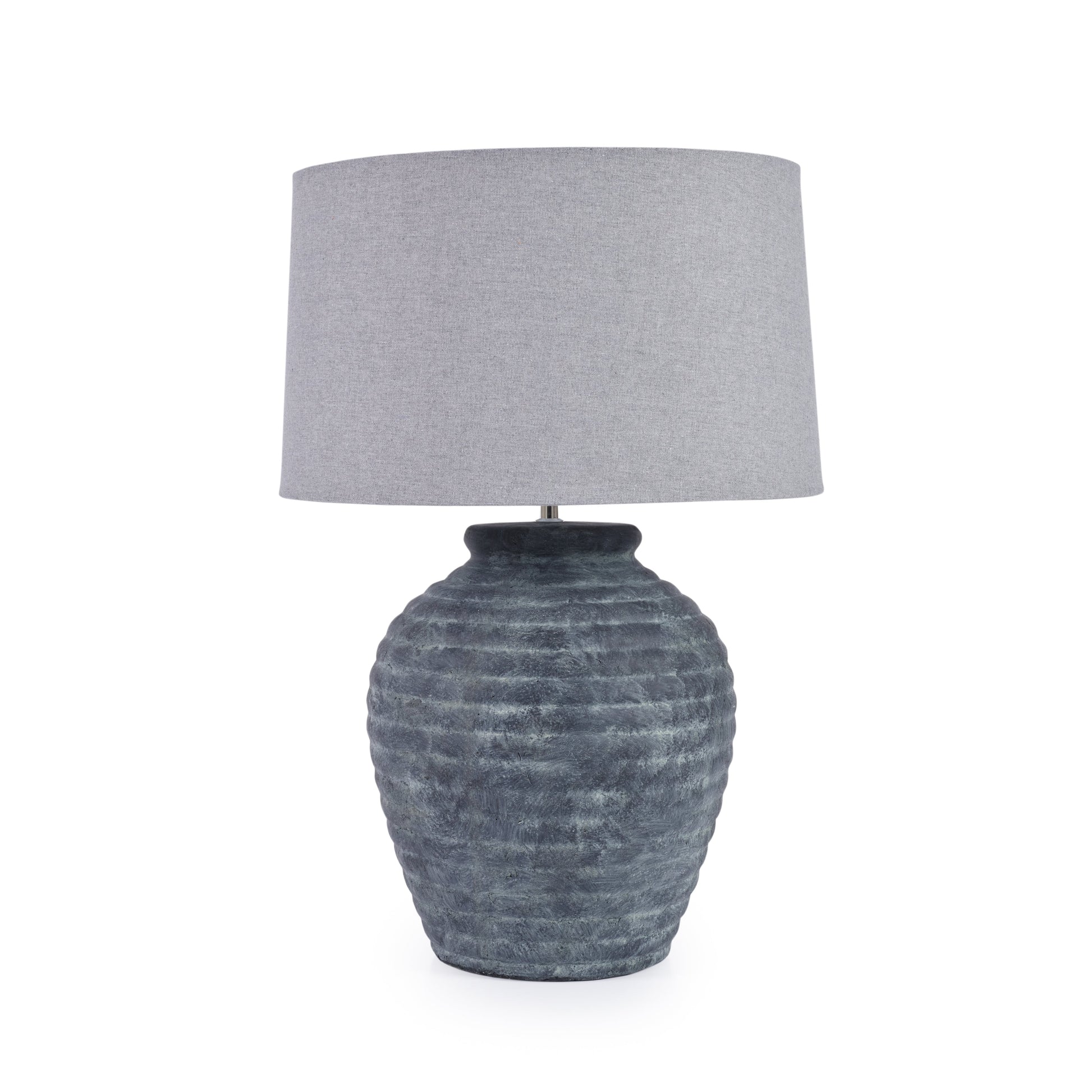 The Franz Lamp is a statement piece that will elevate any room with its large, stone design in a sleek grey and blue finish. Coupled with a grey shade, it adds a touch of sophistication to any space. Perfect for those looking for a bold and elegant lighting solution.