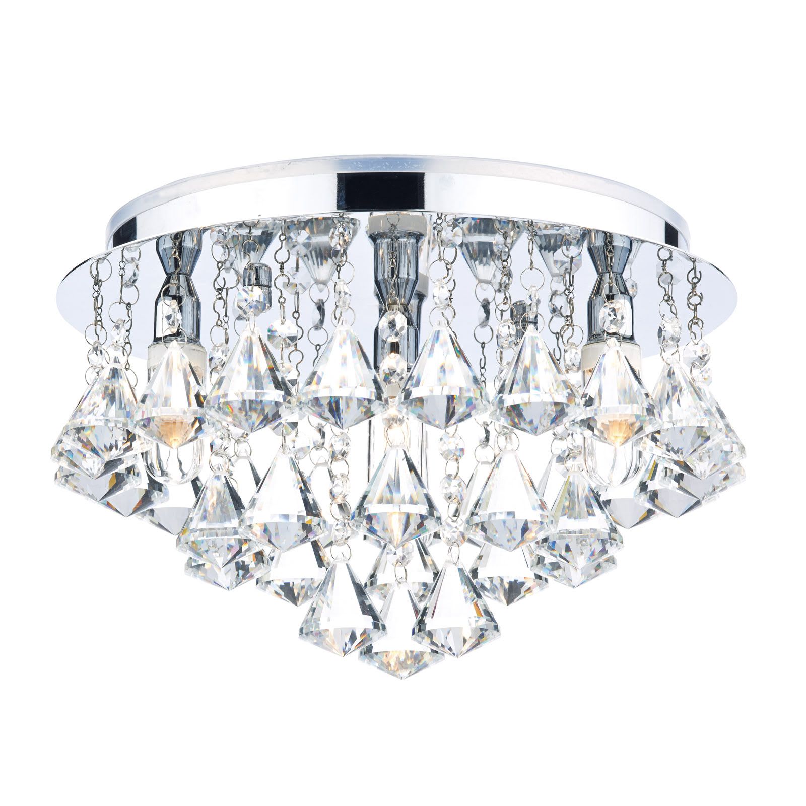 The elegant Fringe bathroom flush ceiling light features tiered layers of faceted crystal beads and large droppers. All these faceted crystal glass beads sparkle intensely as they diffuse the light. The 4 lamp holders and multiple strings of the beads are suspended within from a ceiling plate that is mirror polished to double the effect. Suitable for the bathroom, but you can jazz up any room with this spectacular ceiling light. It has a low profile, so is suitable for low ceiling heights. The Fringe flush ceiling light is IP44 rated so is suitable for use in bathroom zones 1 and 2 or anywhere water spray is a risk.