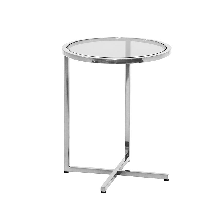 POLSIHED NICKEL FINISH GLASS TOP SIDE TABLE