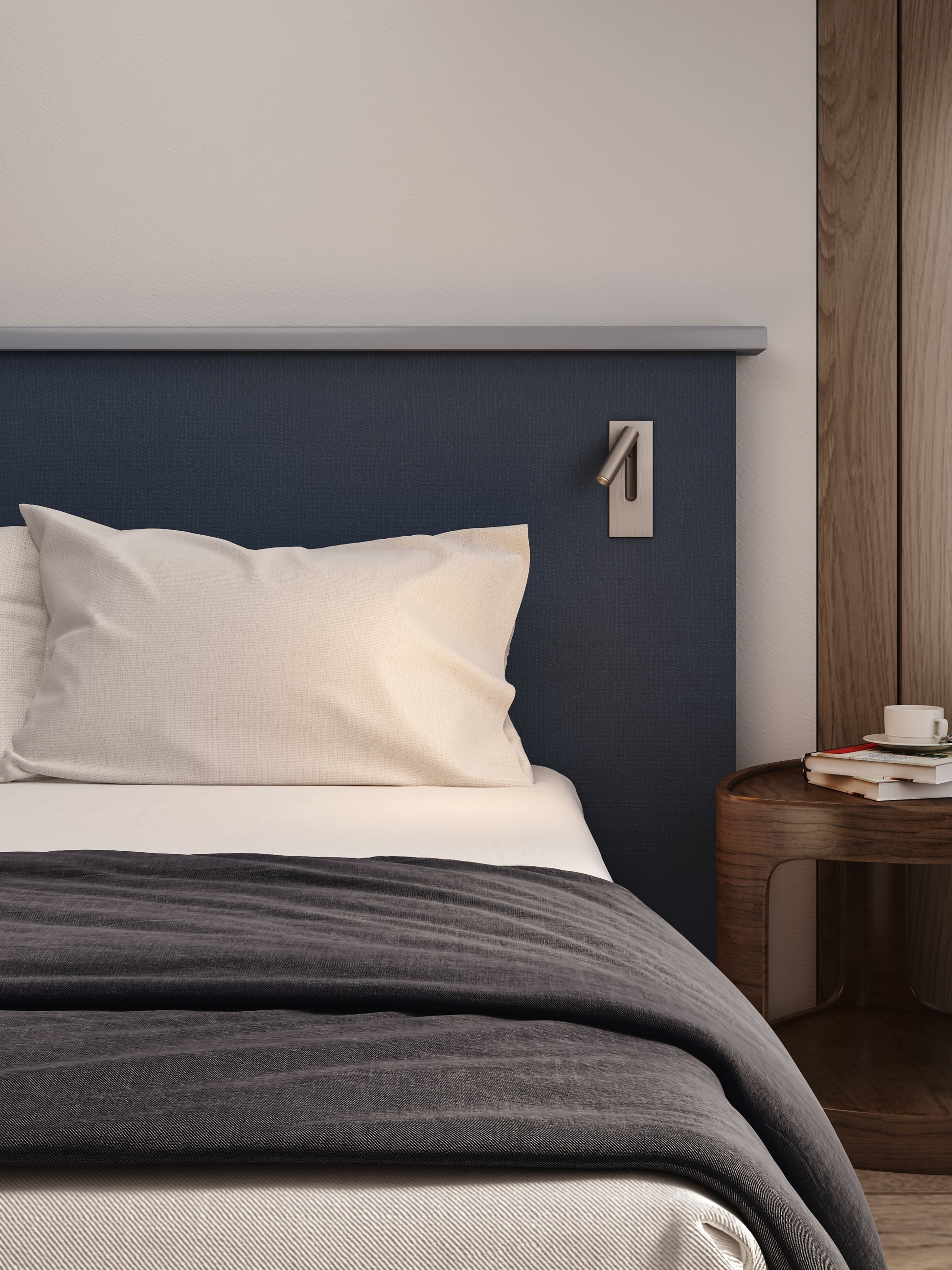 Thanks to its clean lines and high level of visual comfort, the Fuse is one of our most popular reading lights. This updated version, Fuse 3, features a concealed micro switch that automatically turns the light off when it’s pushed back to its central resting place. Designed to complement contemporary interiors, it comes in a choice of six colours and features a deeply recessed LED paired with a matt black bezel for low glare. Fuse 3 uses a push-fit terminal block that allows for easy loop in/out wiring and tool-free connection.