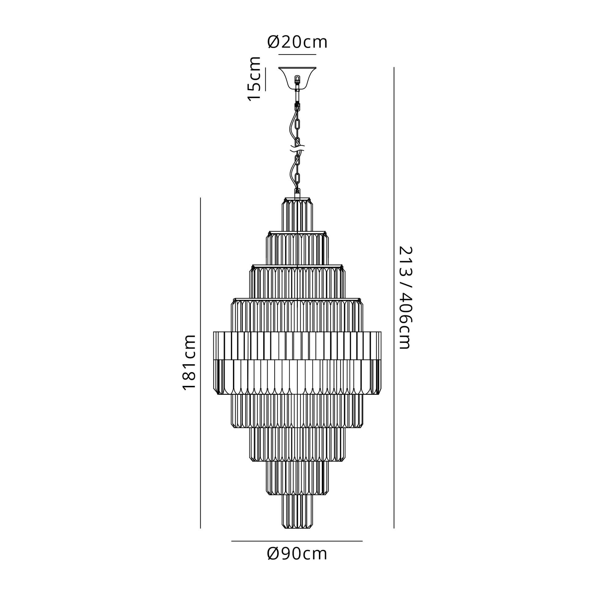 Georgia 90cm Diamond Pendant Round 9 Tier 42 Light- Various Finishes