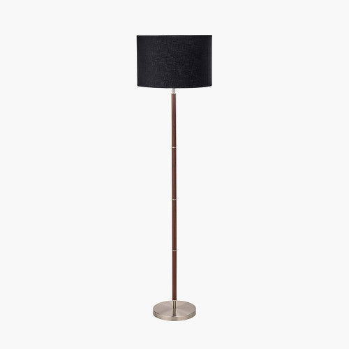 Upgrade your home decor with the Gianni Floor Lamp. Its contemporary, simple, yet elegant design features a brushed silver metal finish with wood veneer detailing. The black faux cotton lined lampshade adds both style and versatility. Elevate your living space with this sleek and sophisticated option.