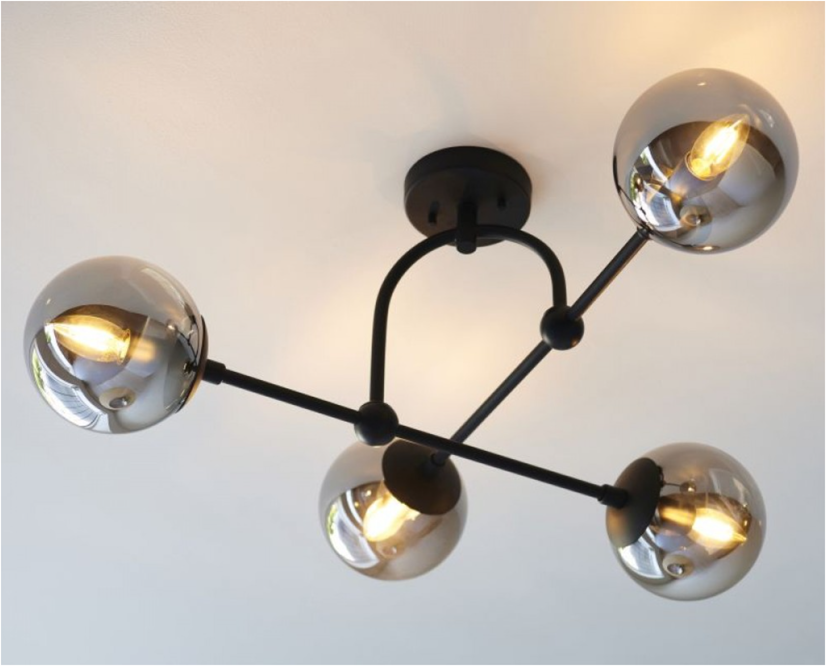 Halbrooke 4Lt Semi Flush - Antique Brass/ Matt Black & Opal/ Smoked Glass Finish