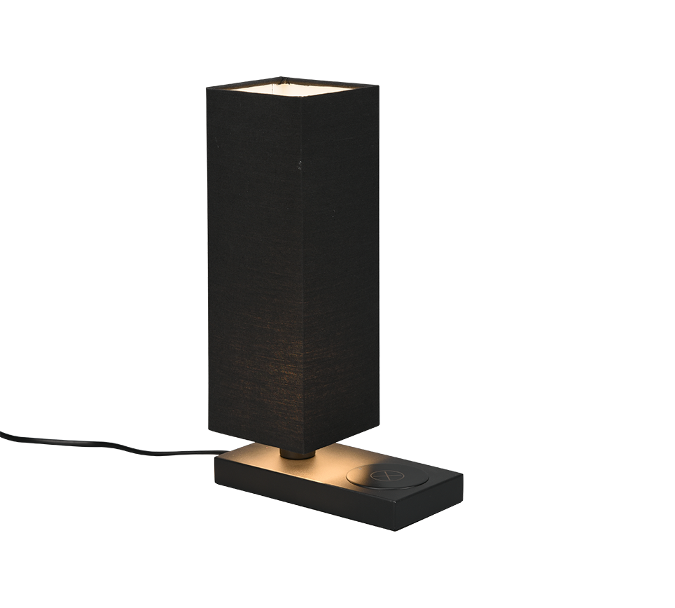 The HALEY table lamp convinces e.g. as a bedside lamp not only with its modern, straight-lined design. In addition to its elegant appearance, the lamp has an inductive charging station on its angular base, which means that suitable smartphones can be charged easily by simply placing them on the base. In addition, an On/Off touch function allows the unit to be switched on and off with a single touch. The lamp has a black fabric shade and a base in matt black. For energy-saving lighting, it is recommended to use an LED illuminant. These are an optimal alternative to conventional halogen lamps and stand for a high quality of light and energy savings of up to 80%. In addition, LED lamps help you benefit from a long service life, low heat generation and at the same time protect the environment.
