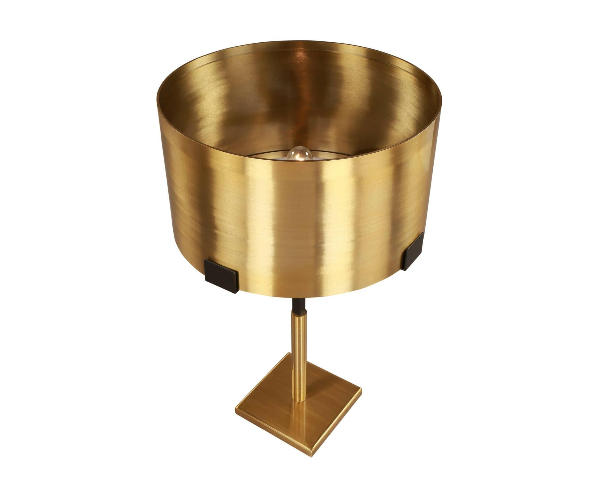 Enhance your interior with this Brushed Brass Finish & Black Steel Intensify the glamour in your space piece, complete with the contemporary Hamilton table lamp and its opulent metallic charm. This beautiful table lamp is expertly crafted in high quality steel. Its tall silhouette, set on a square base carries a feeling of architectural grandeur. (This lamp requires 1 × 60W, E27 type bulb. Bulbs not included).