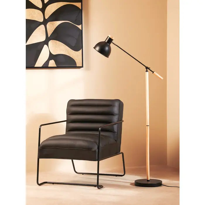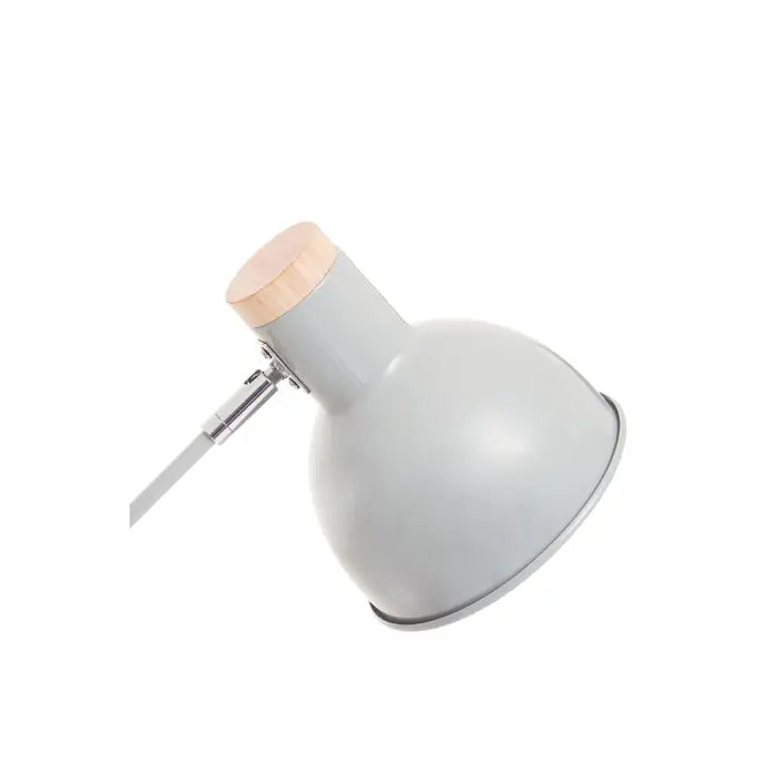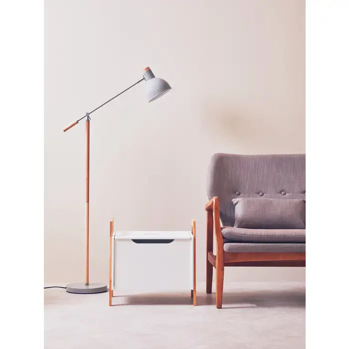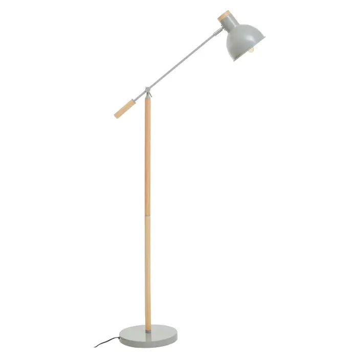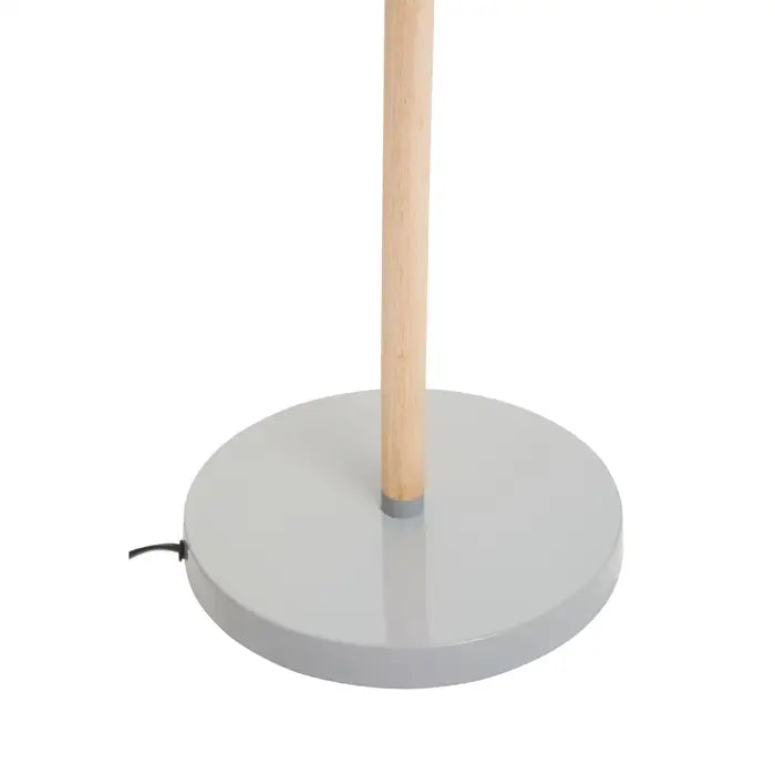 The Hanseatic floor lamp's minimalist silhouette, featuring a matte grey metal frame and natural rubberwood base, complements any Nordic-inspired space.