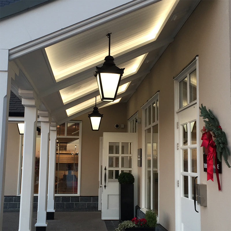 This large ornate hanging light from the traditional range is suited to larger properties or amenity walkways. Each lantern is supplied with galvanised chain along with a ceiling rose for roof fixing, other fixings are available on request.