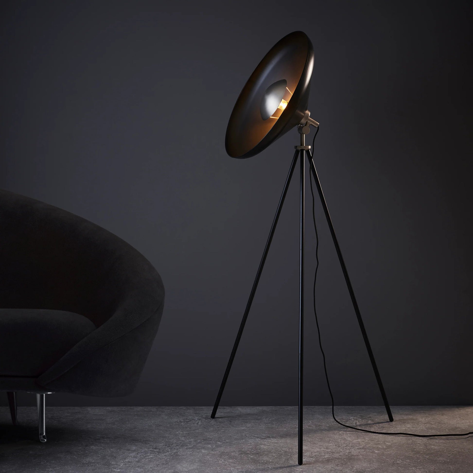 Hubble 1Lt Tripod Floor Lamp - Brass/Black