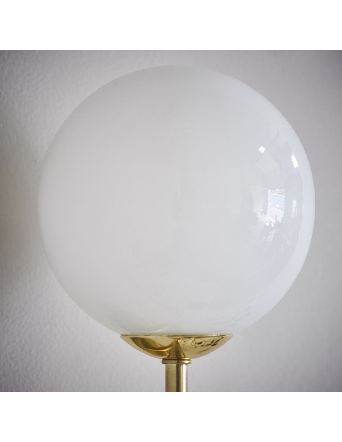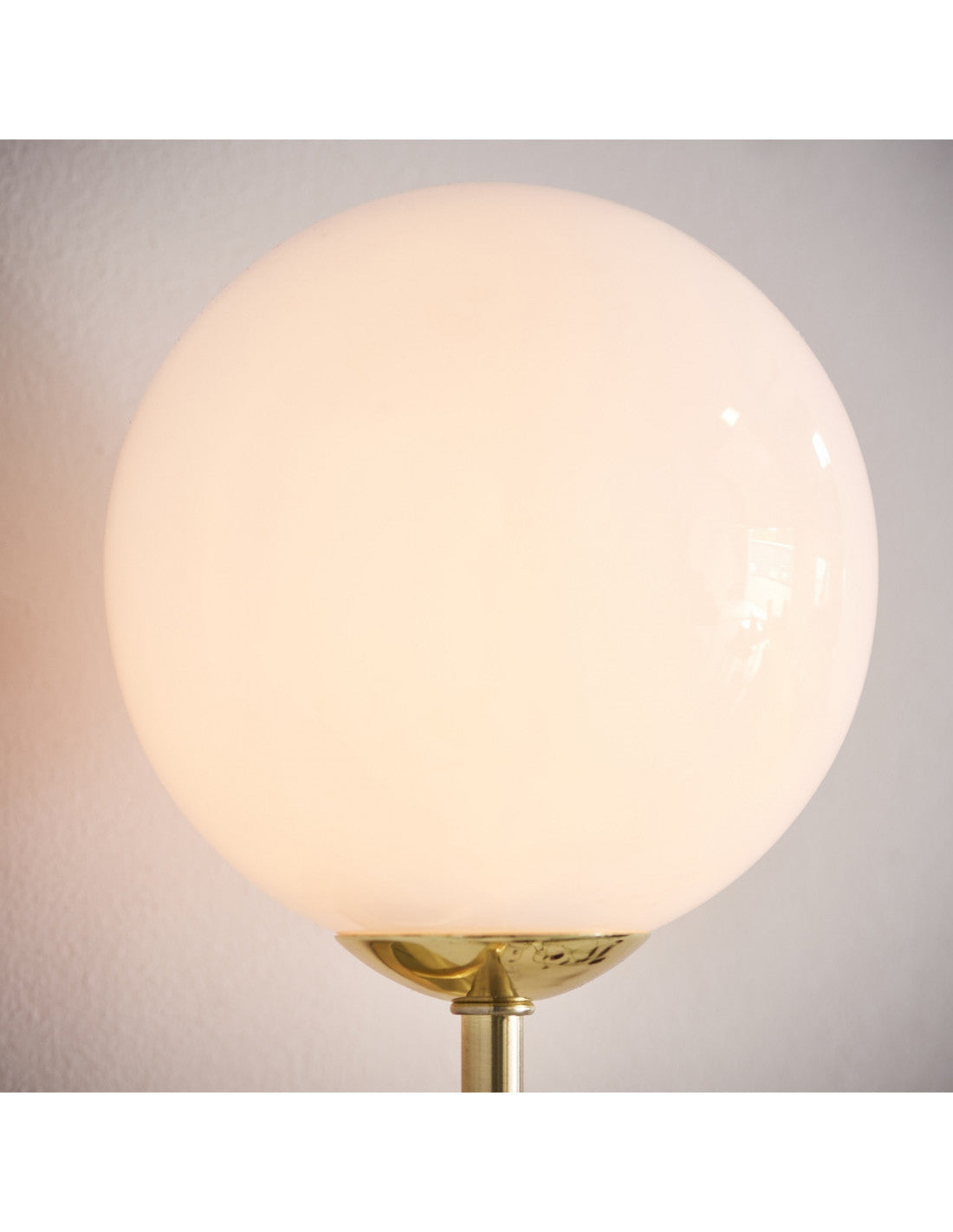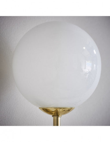 A perfect balance of gloss opal blown glass shades with brushed brass metalwork. Perfect for use with G9 LED lamps.