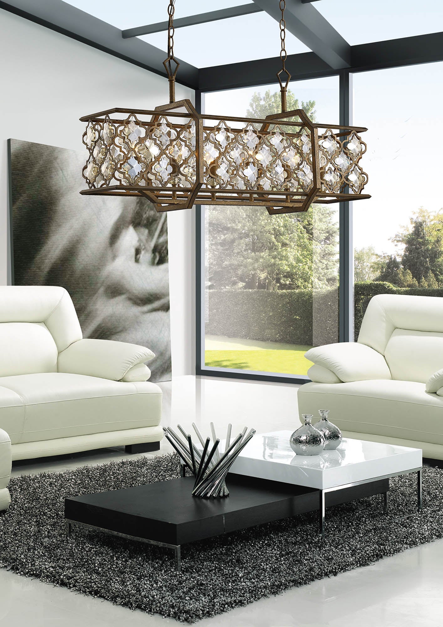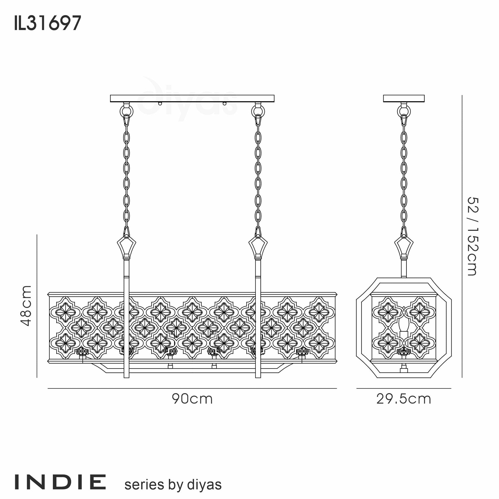 Indie takes its inspiration from Middle Eastern styles and patterns with its Morroccan grid like frame. Baroque in finish with a combination of mocha and teak tinted plating, this range is exotic and a show stopper. The pendants are either rounded or rectangular, depending which one you prefer. Indie is a light that adds style as well as function to your chosen room.