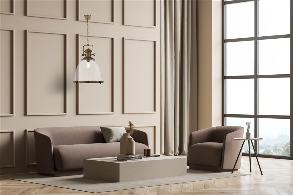 This large Industrial pendant light with clear glass shade has a solid industrial style with a traditional antique brass finish. The dome shade has ornate antique brass metal clips around the rim and matching stylish, chunky metal features around its top, with an adjustable chain attaching it to the ceiling. It looks fantastic in any post-modern living space, and the clear glass diffuser creates a nice lighting effect for the entire room.