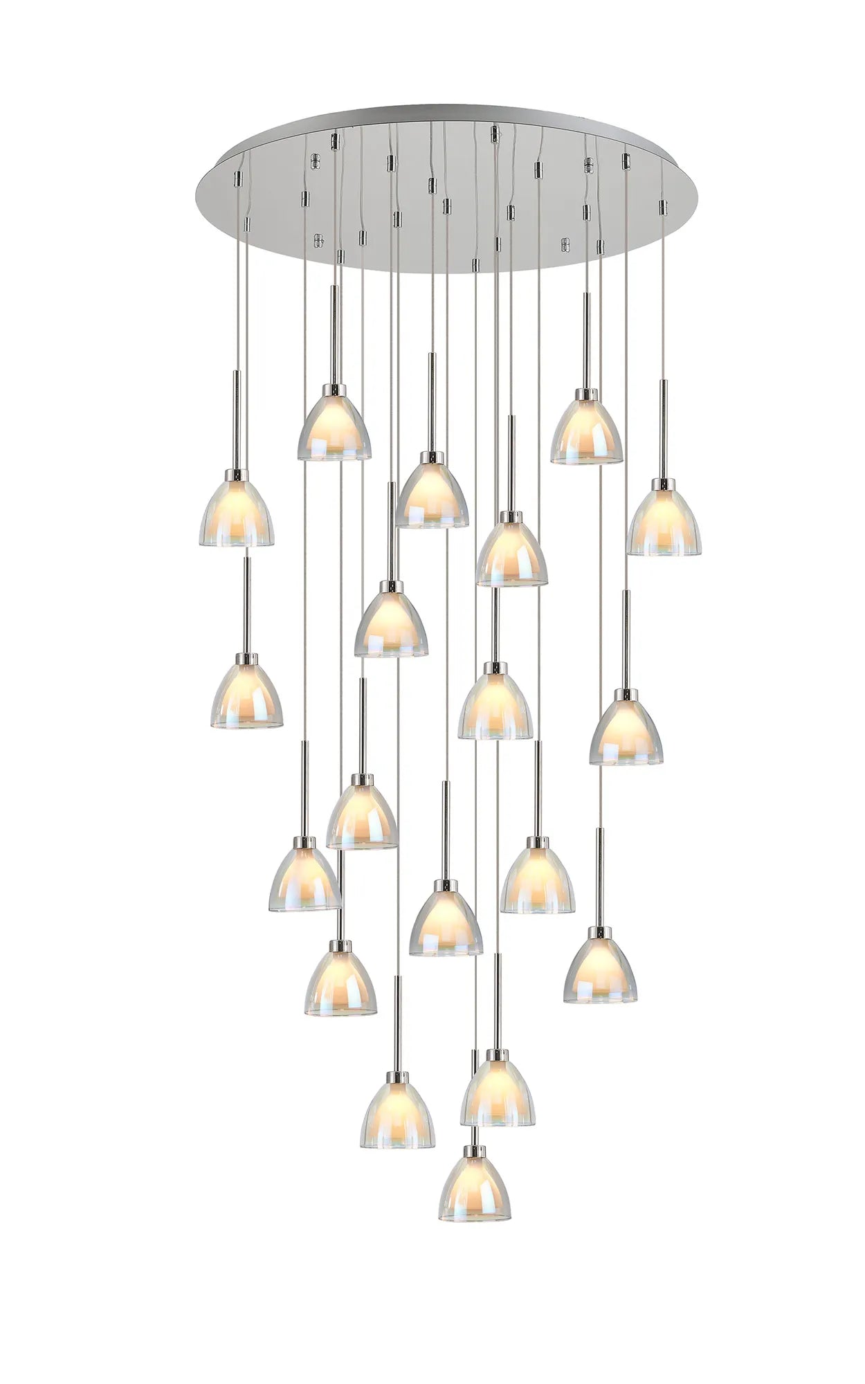 Ipswich is another inventive 'design by you' collection to create a bespoke design suitable for the specified requirements. Unlike other ranges of this nature, Ipswich offers an even wider variety of compatible frames including different plate shapes and sizes hosting a number of single suspension drops, wall lamps and an impressive 2 tier chandelier. The expansive range of glass designs extend from a round chrome globe to a more unique tall iridescent cylinder. Presenting a collection that can be used to create individual designs on a grander scale the possibilities for creativity are limitless.