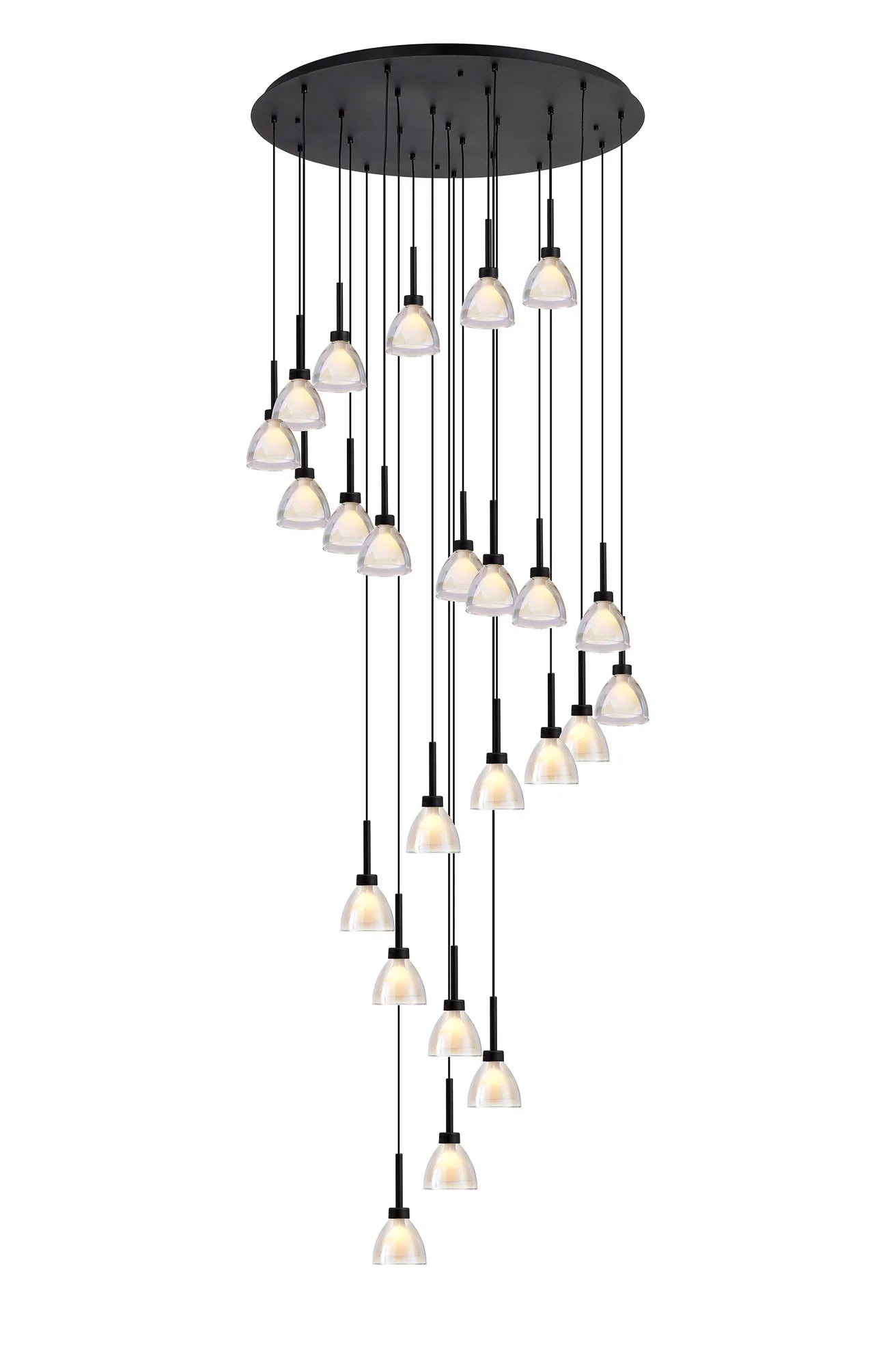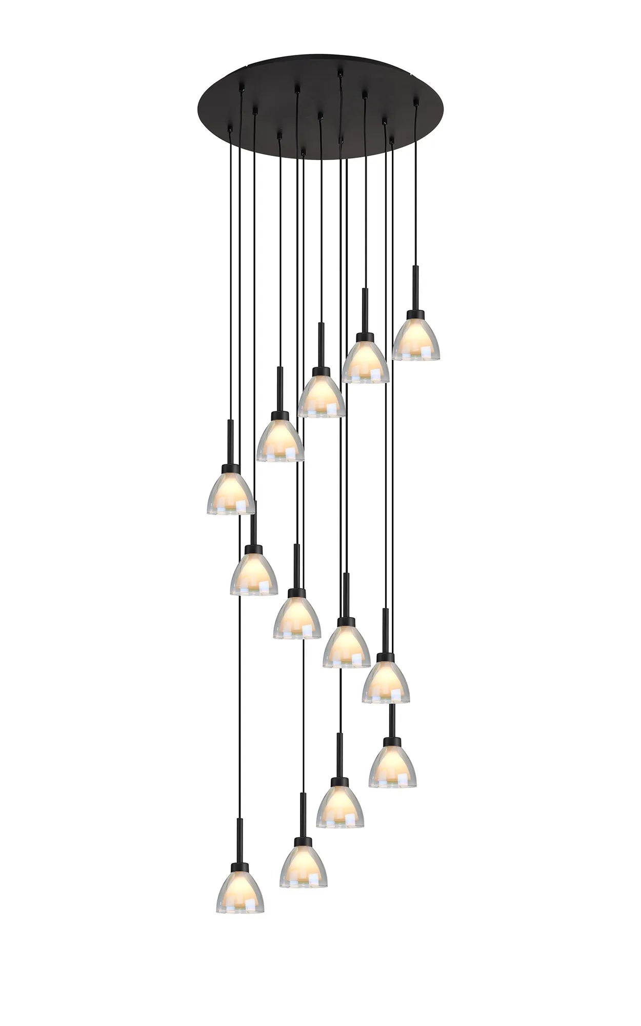 Brief Description: Ipswich 2m Round 3 Light Pendant Cone Glass Satin Black