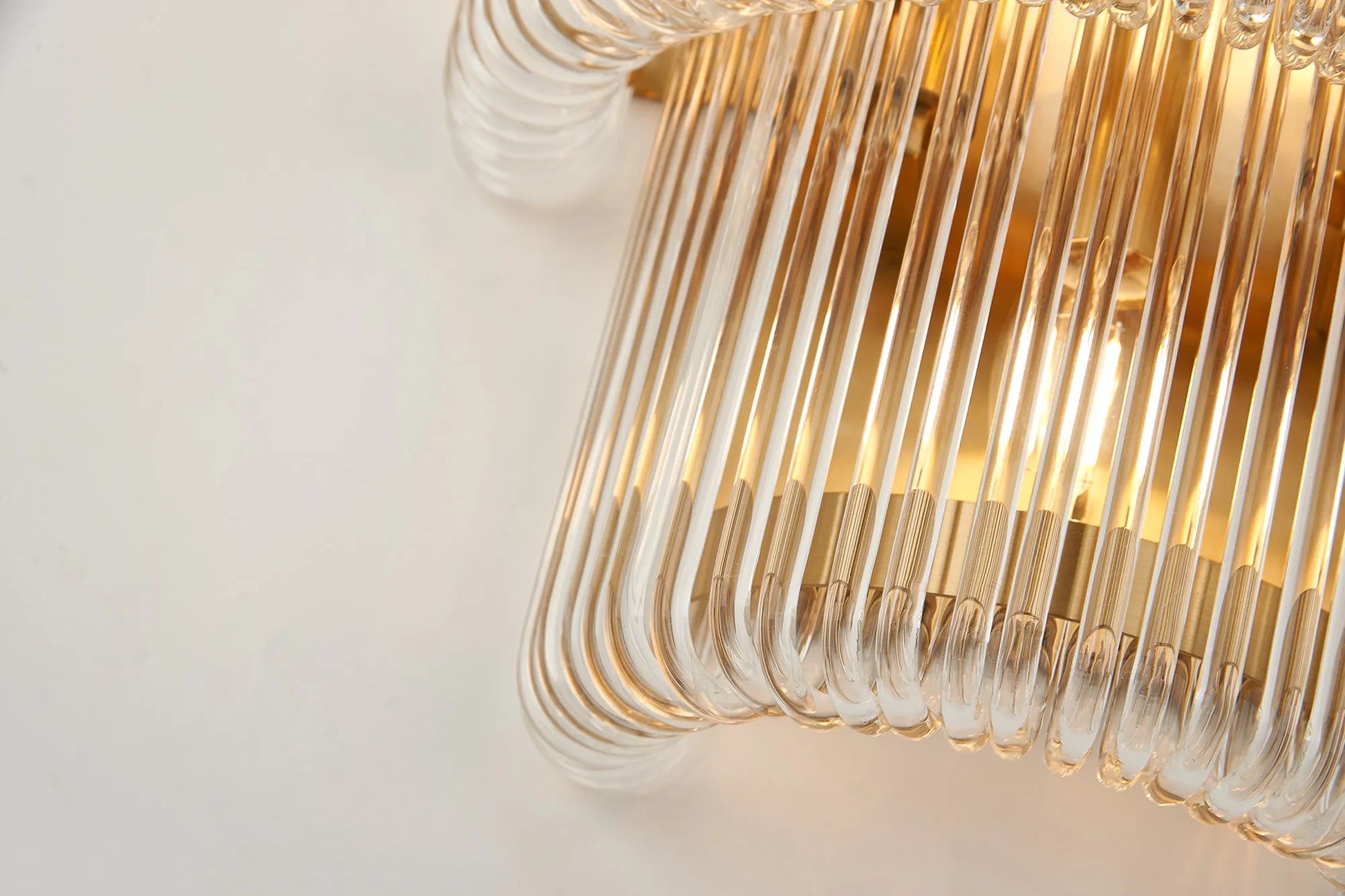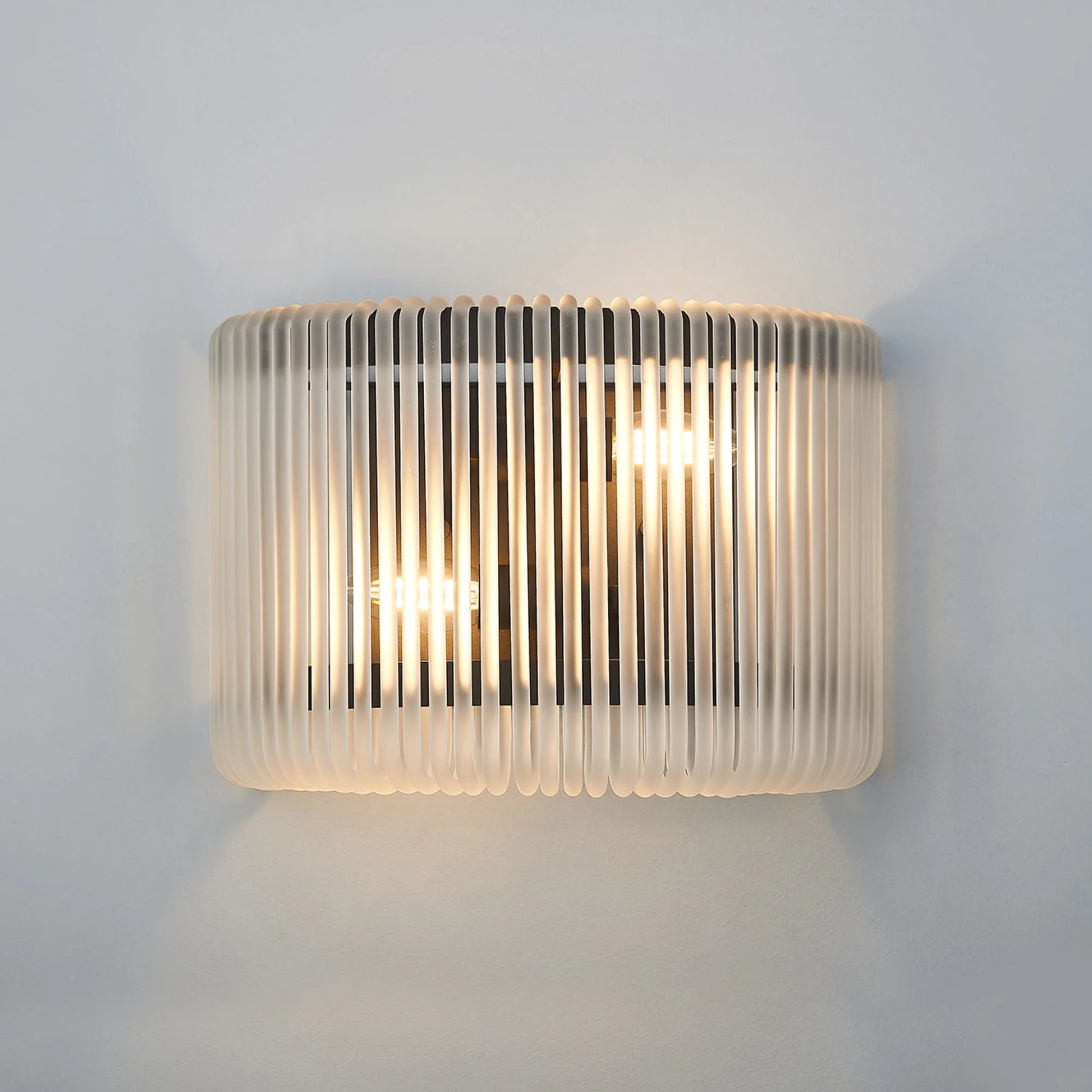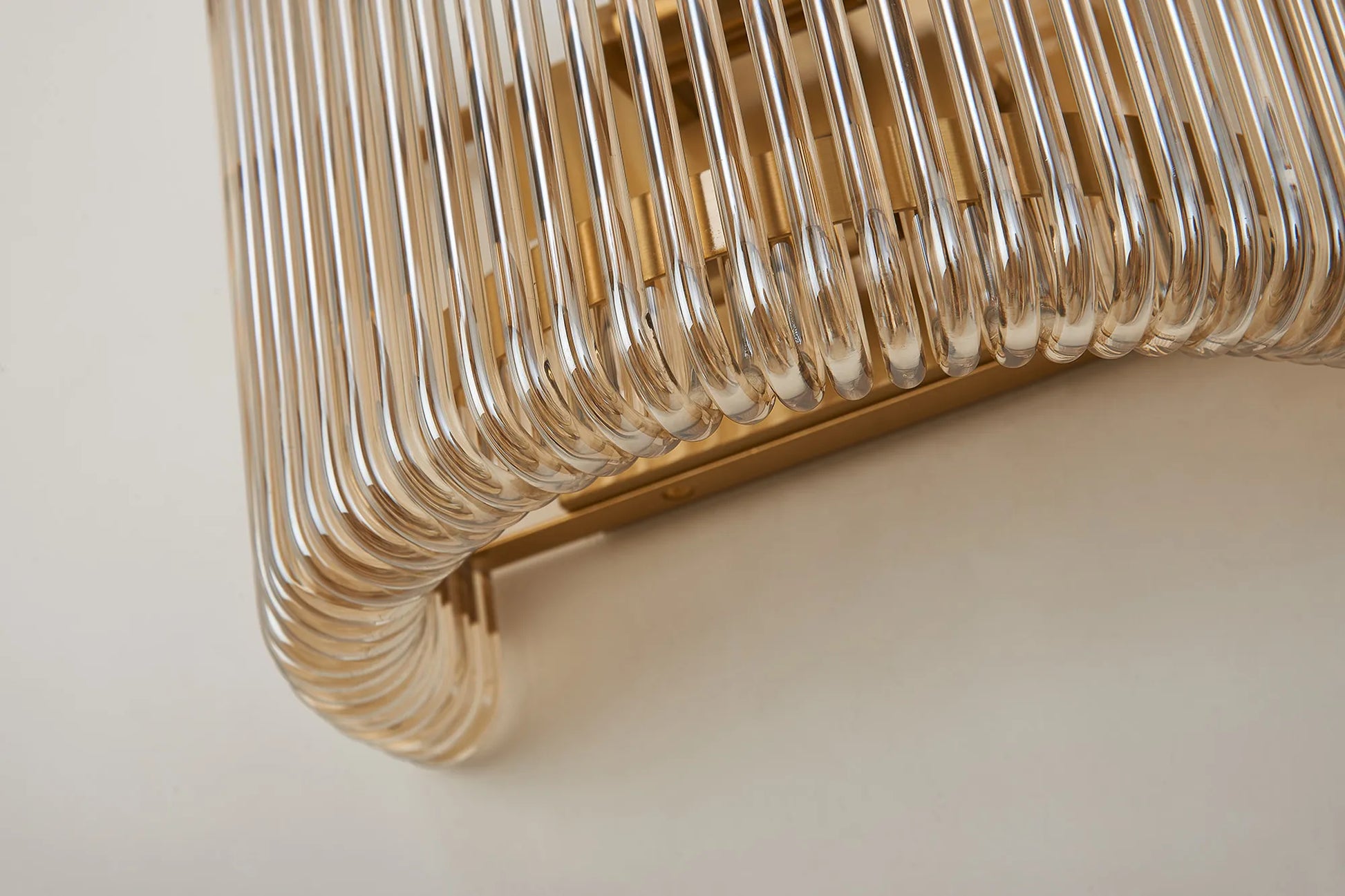 Jonas is an inventive lighting collection that blends striking visuals with effortless installation. Each piece features a scalloped trim frame, designed to neatly hang the glass hooks that create its captivating detail. Available as flush ceiling, pendant, and wall lamp frames, the range offers versatility for any setting. Choose from glass finishes in clear, smoke brown, smoke, or frosted to complement your space, paired with frame options in elegant brass or modern black. A distinctive design that makes a bold yet refined statement in any interior.