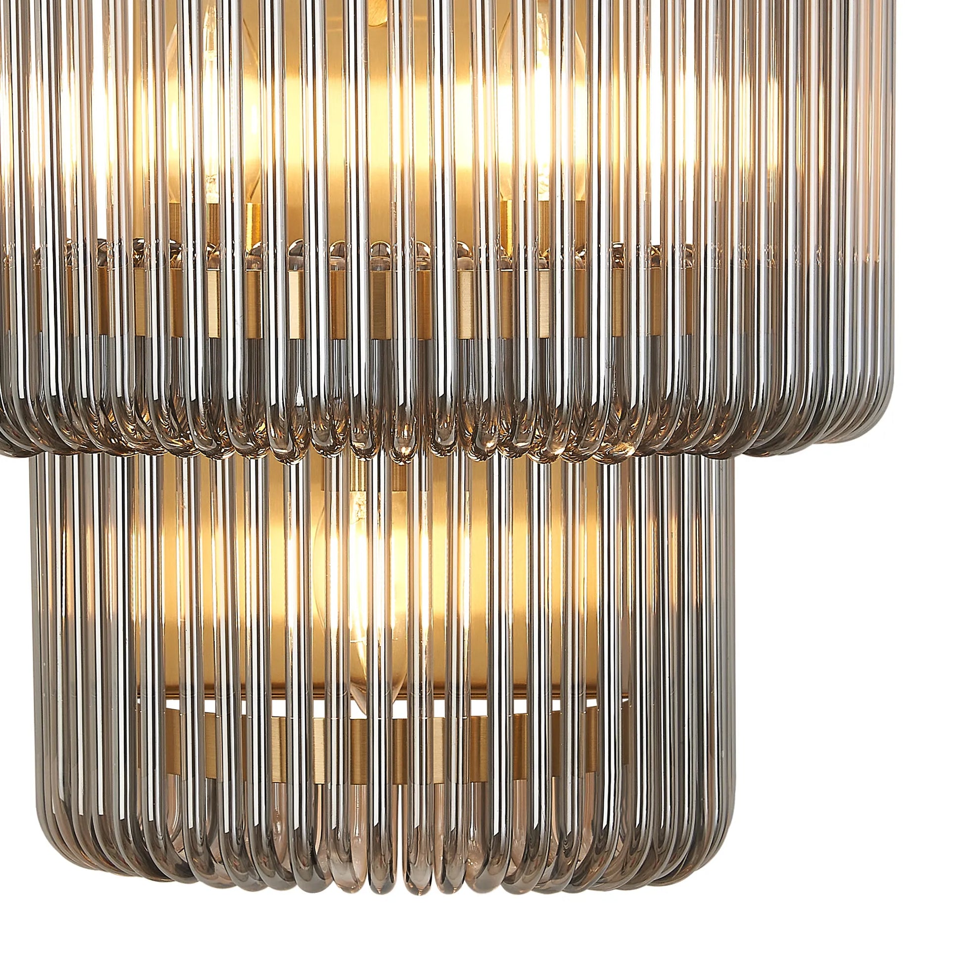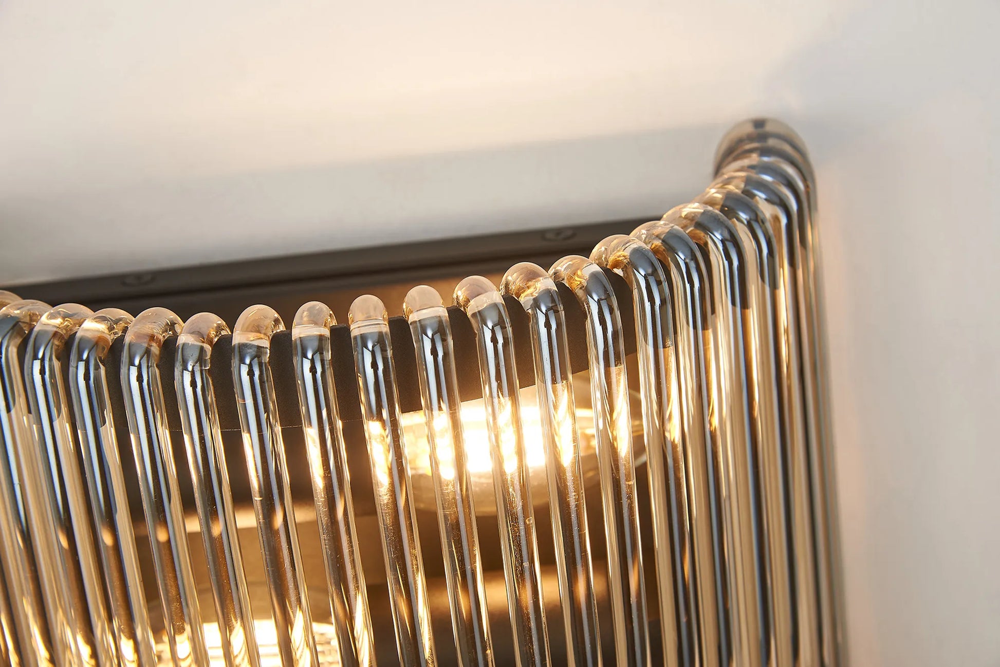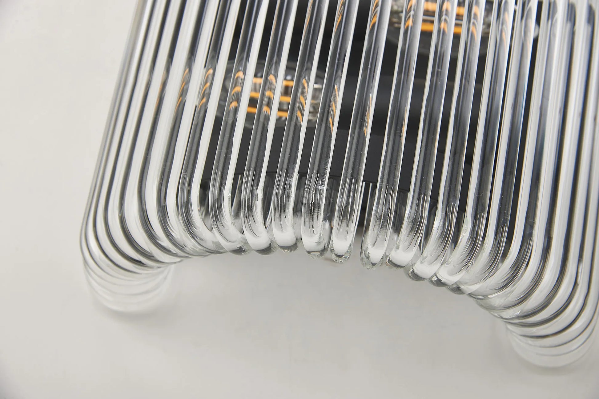 Jonas is an inventive lighting collection that blends striking visuals with effortless installation. Each piece features a scalloped trim frame, designed to neatly hang the glass hooks that create its captivating detail. Available as flush ceiling, pendant, and wall lamp frames, the range offers versatility for any setting. Choose from glass finishes in clear, smoke brown, smoke, or frosted to complement your space, paired with frame options in elegant brass or modern black. A distinctive design that makes a bold yet refined statement in any interior.